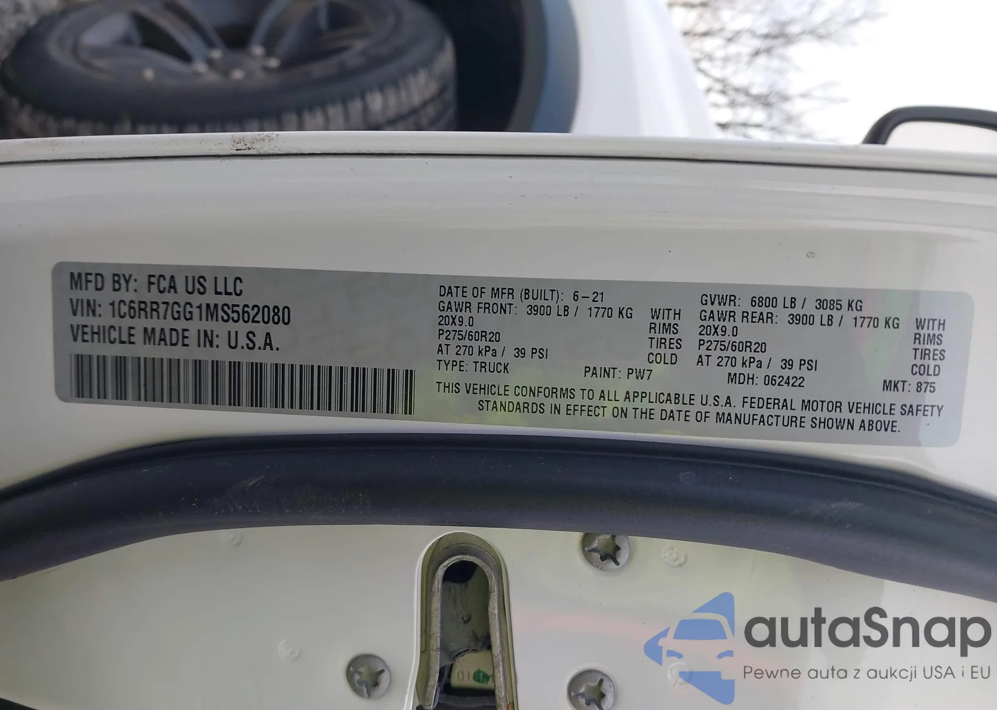 • VIN 1C6RR7GG1MS562080