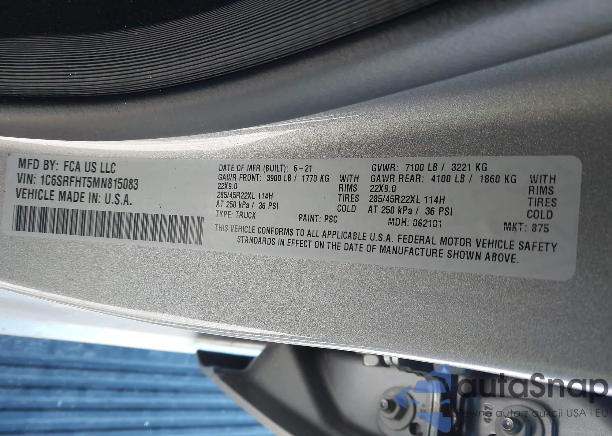 LOT: 44193668 VIN: 1C6SRFHT5MN815083