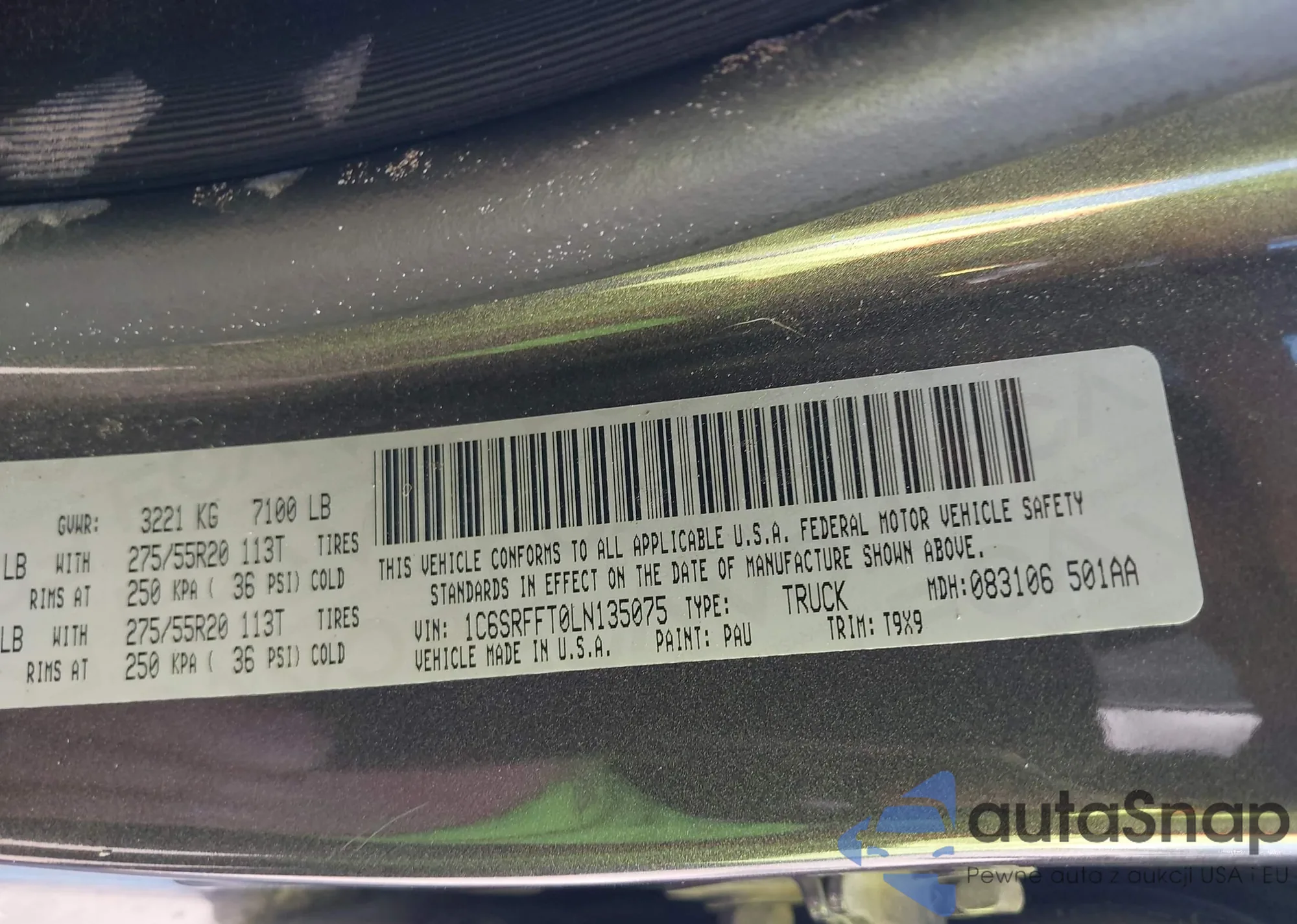 • VIN 1C6SRFFT0LN135075
