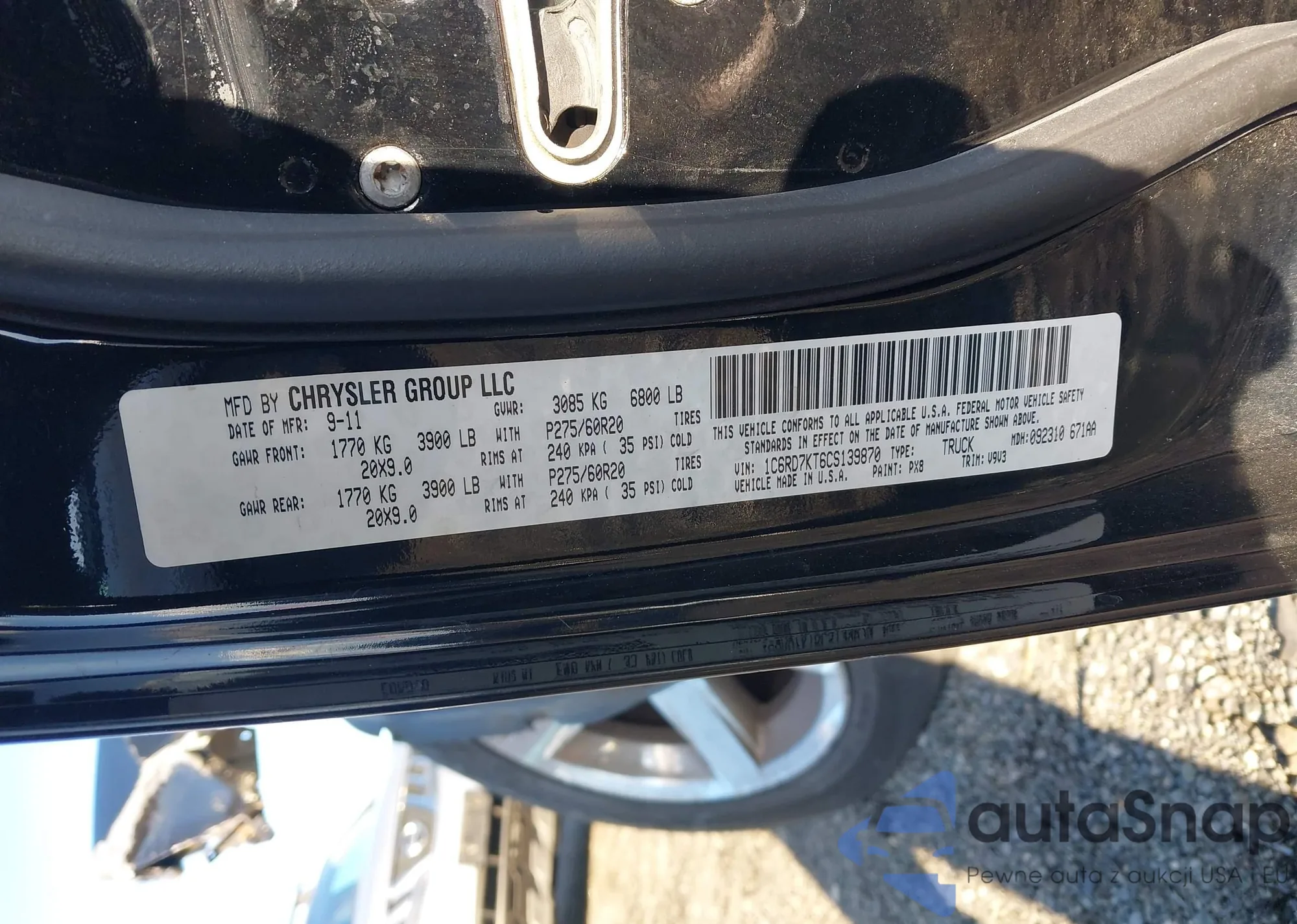 • VIN 1C6RD7KT6CS139870