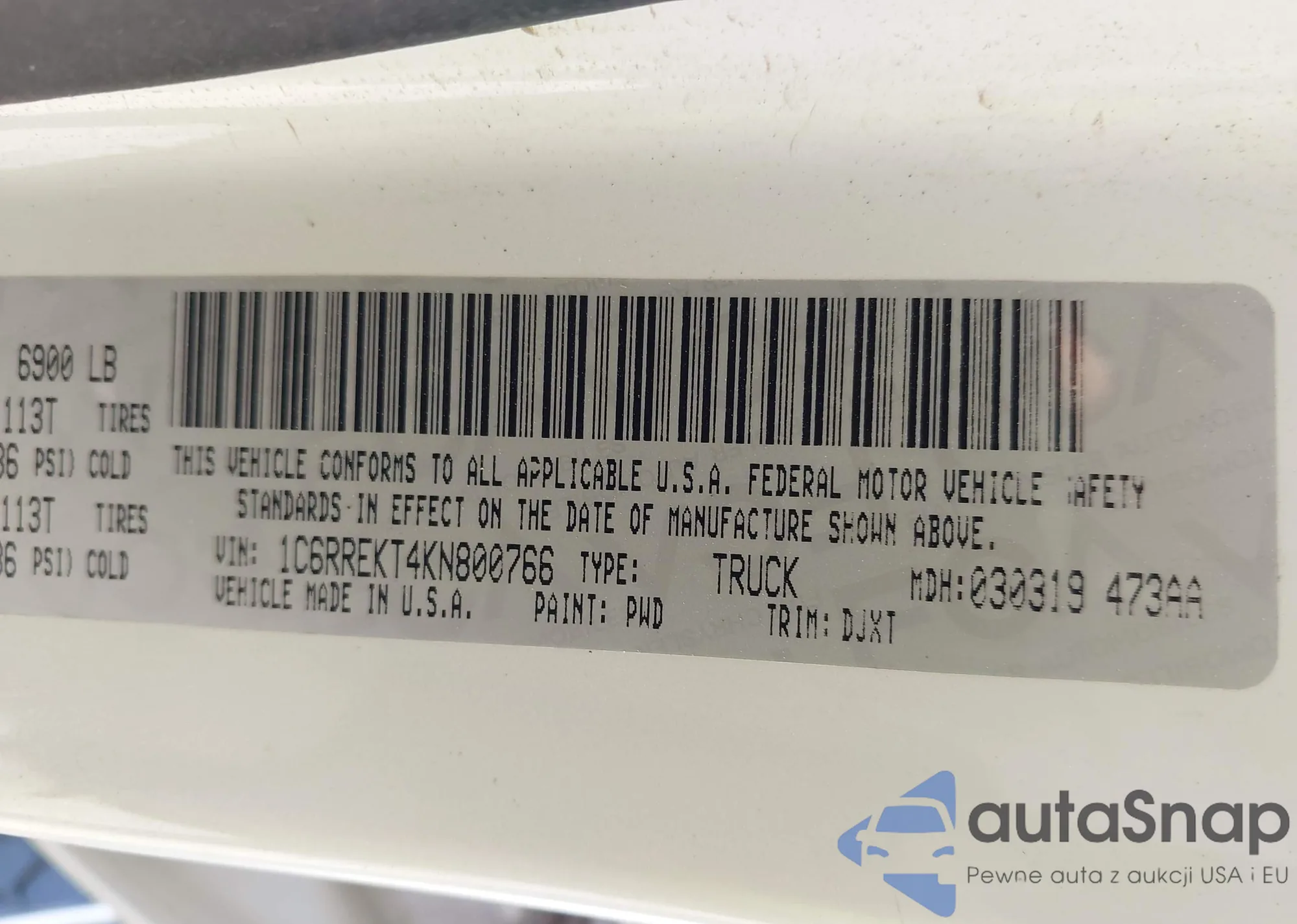 • VIN 1C6RR7FV7K5501070