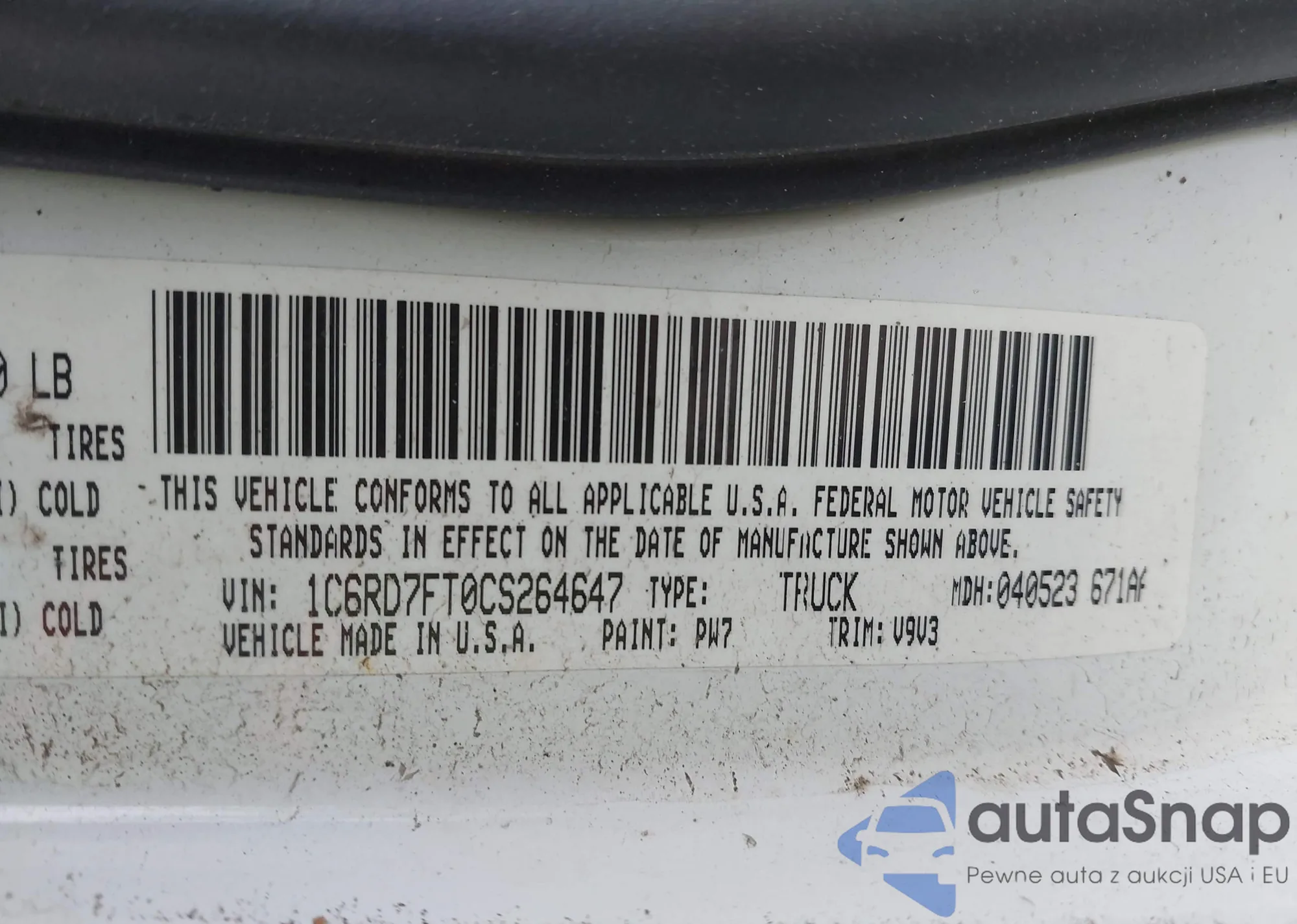 • VIN 1C6RD7FT0CS264647
