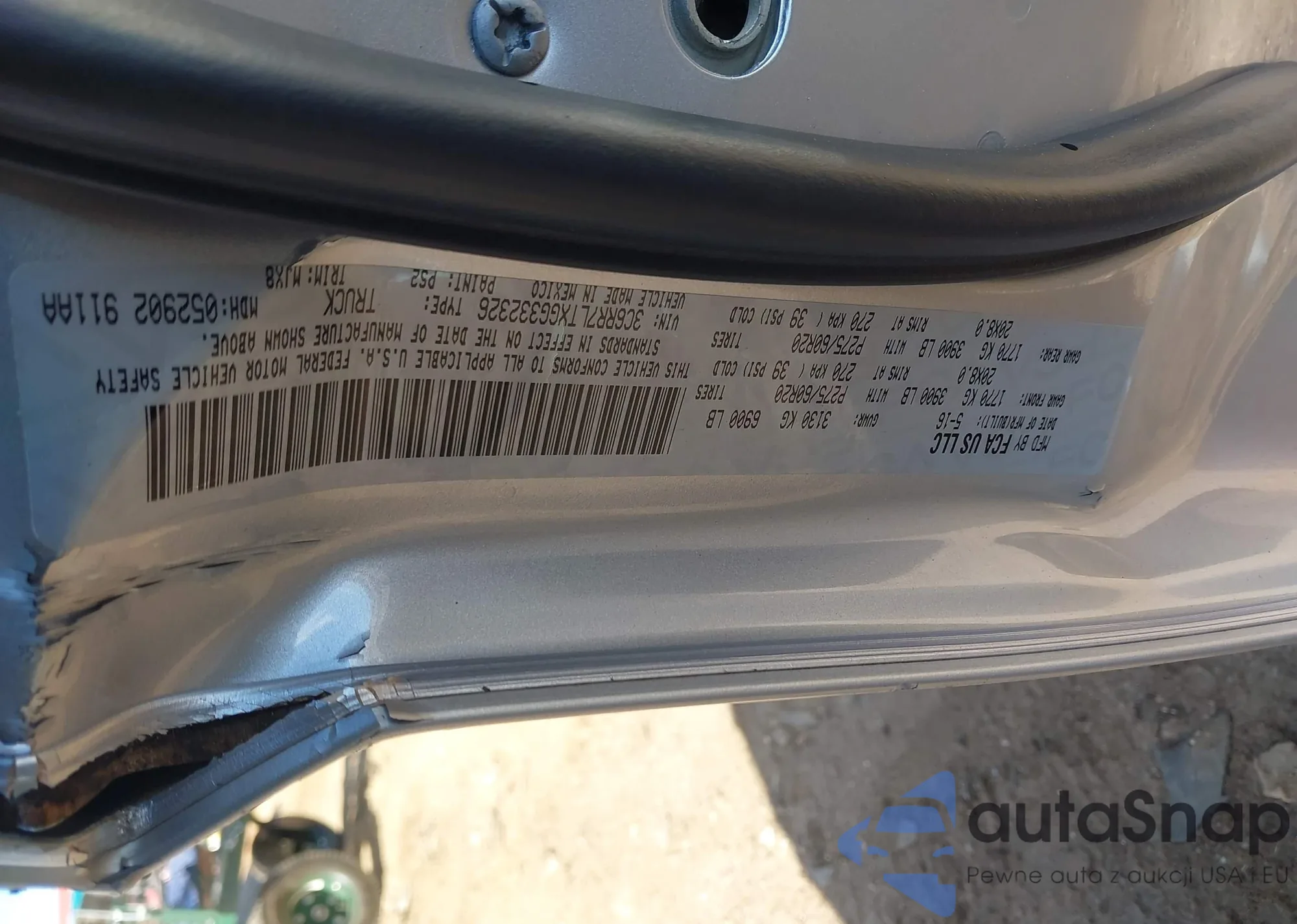 • VIN 3C6RR7LTXGG332326