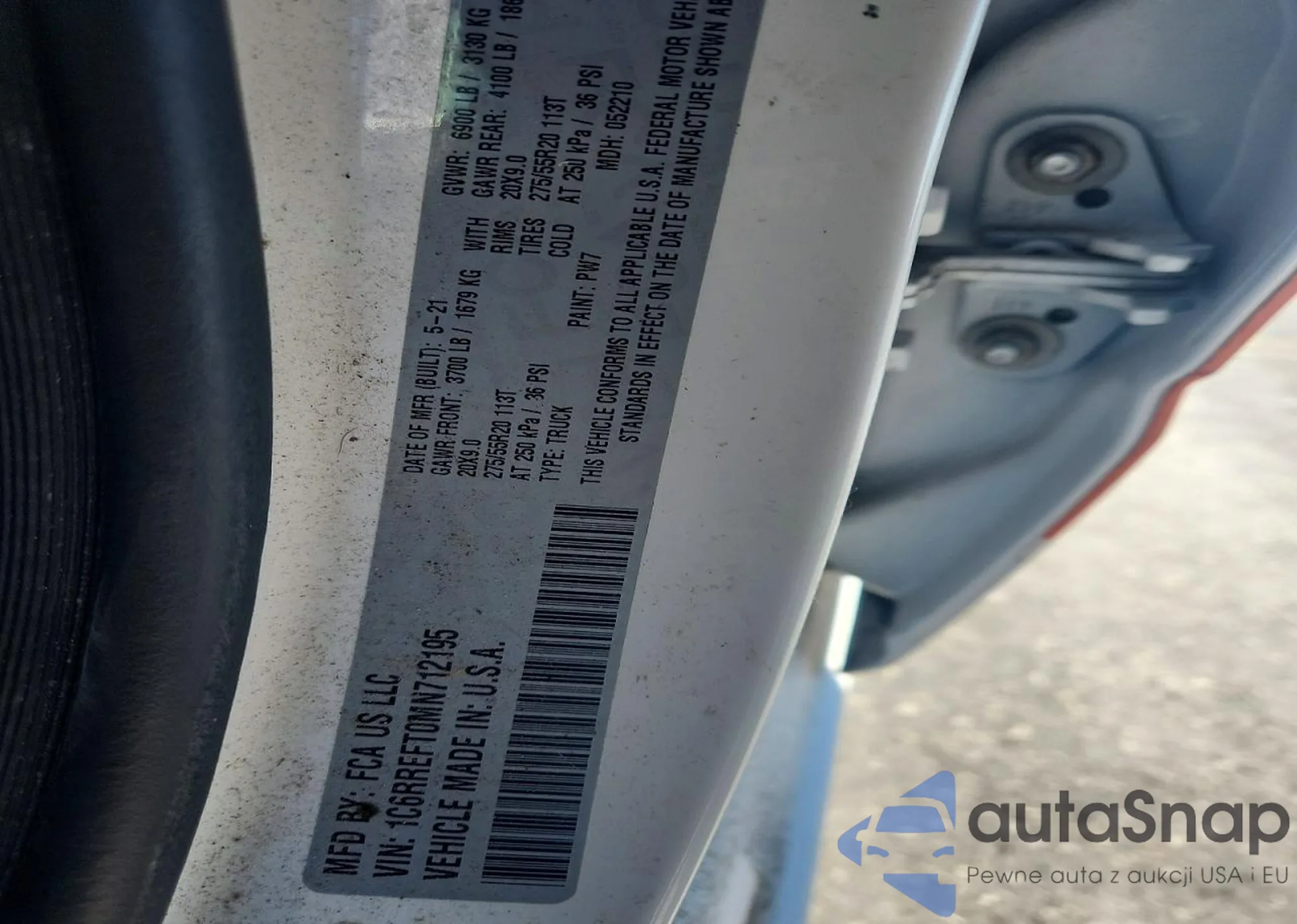 LOT: 75883035 VIN: 1C6RREFT0MN712195