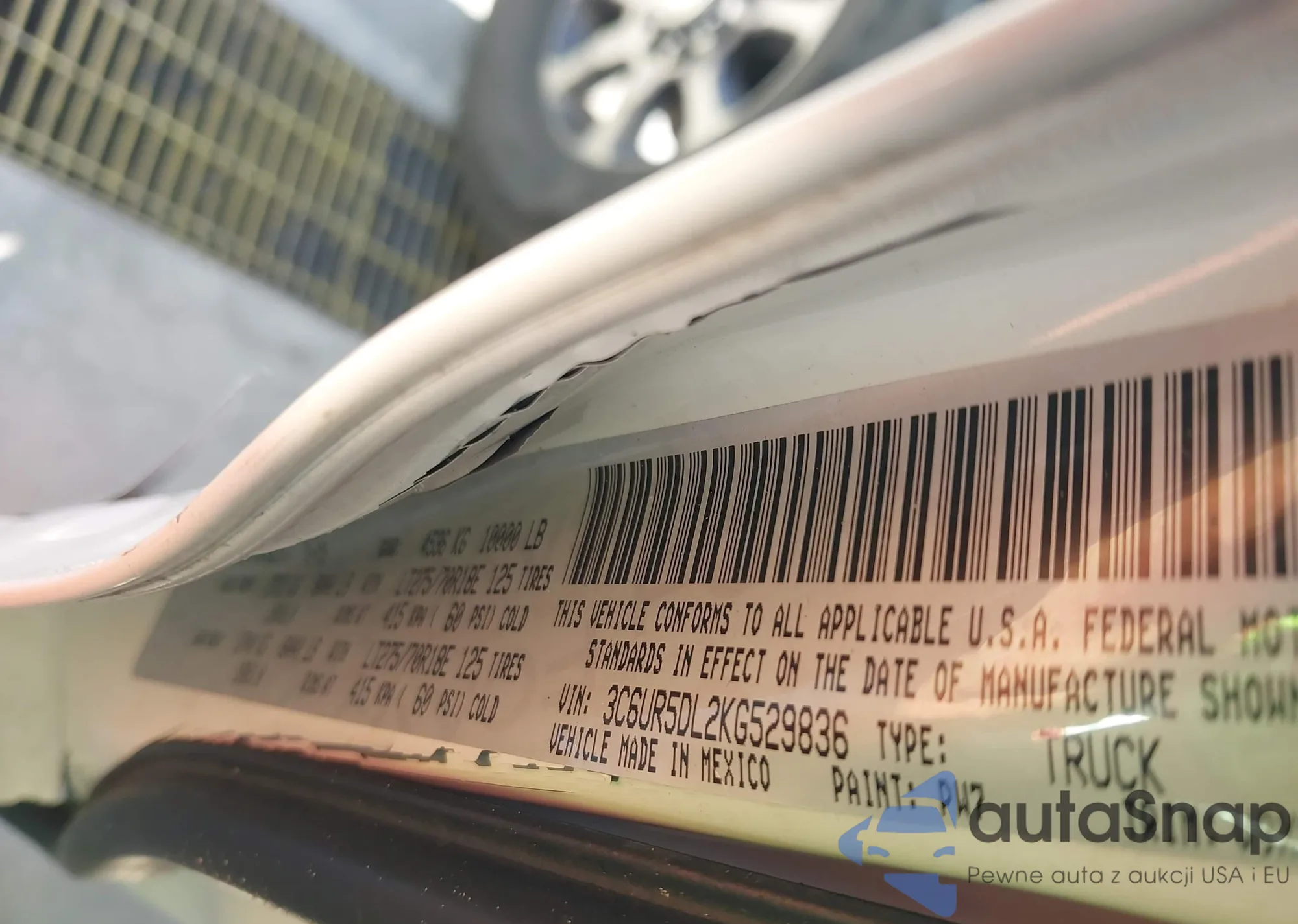 • VIN 3C6UR5DL2KG529836
