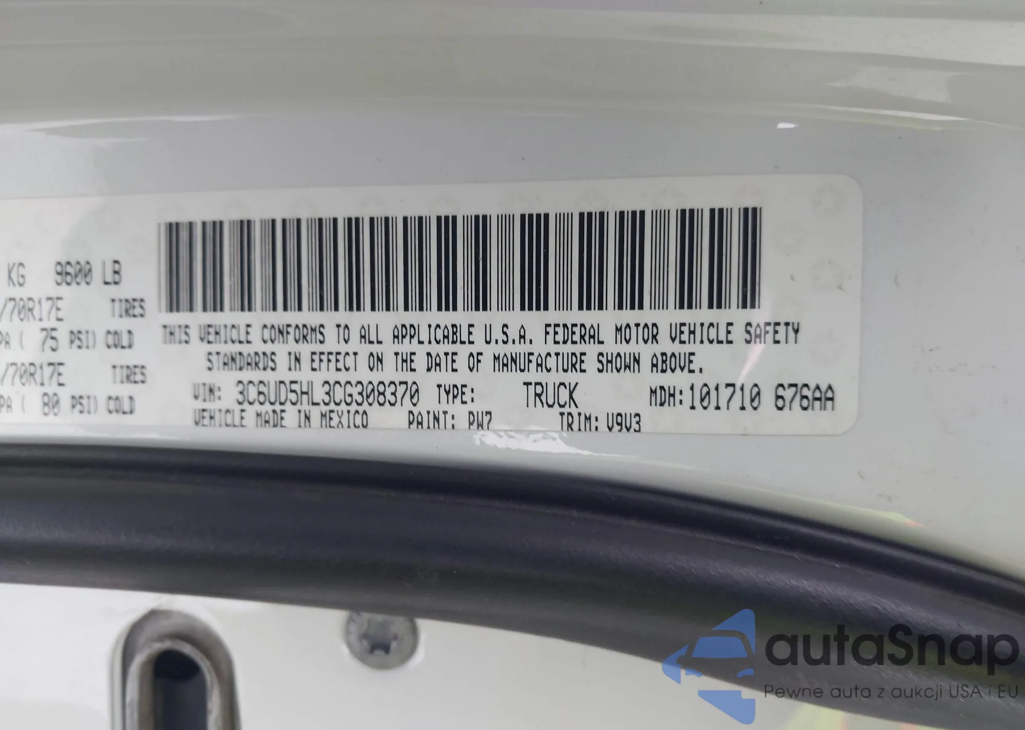 • VIN 3C6UD5HL3CG308370
