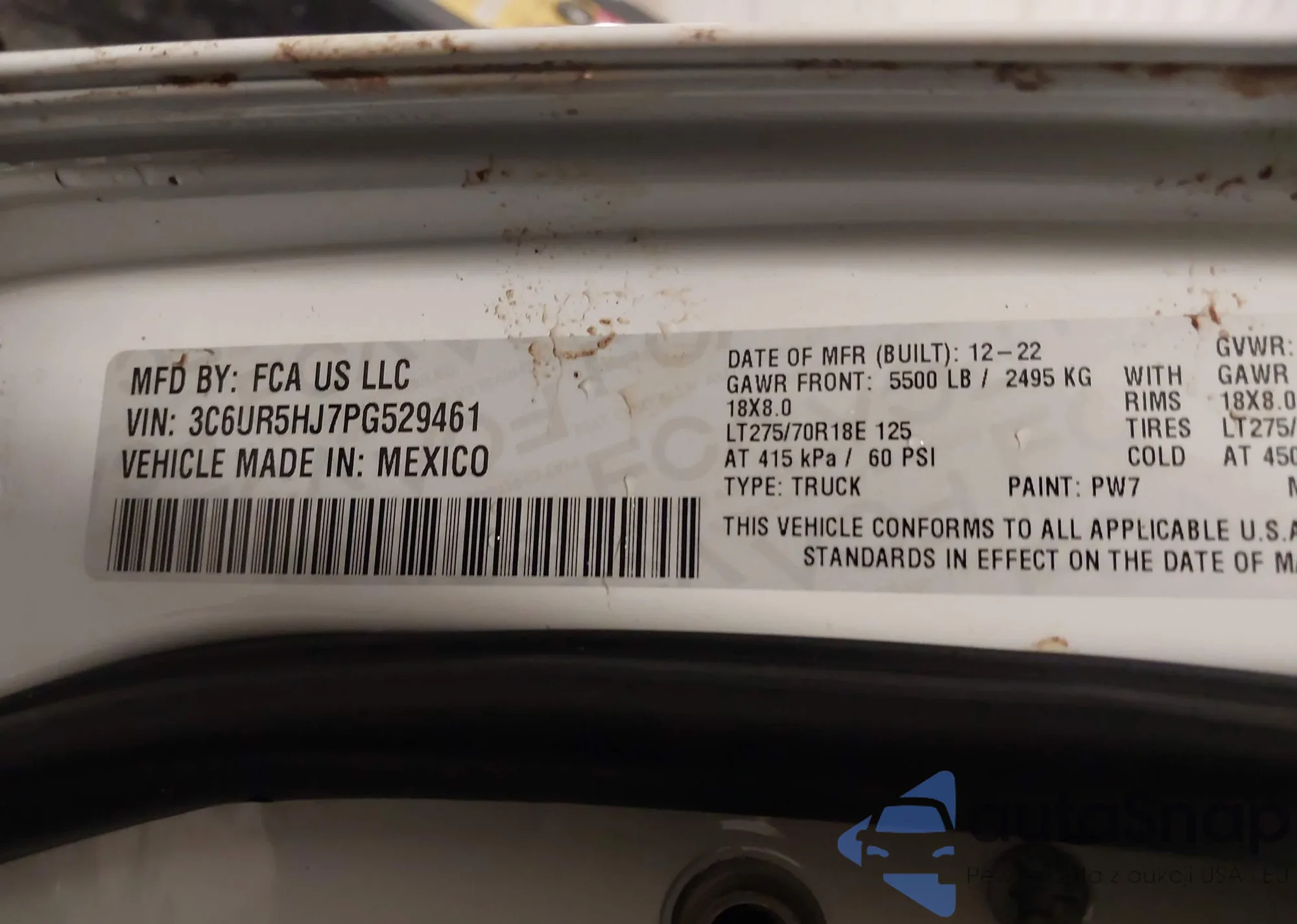 • VIN 3C6UR5HJ7PG529461