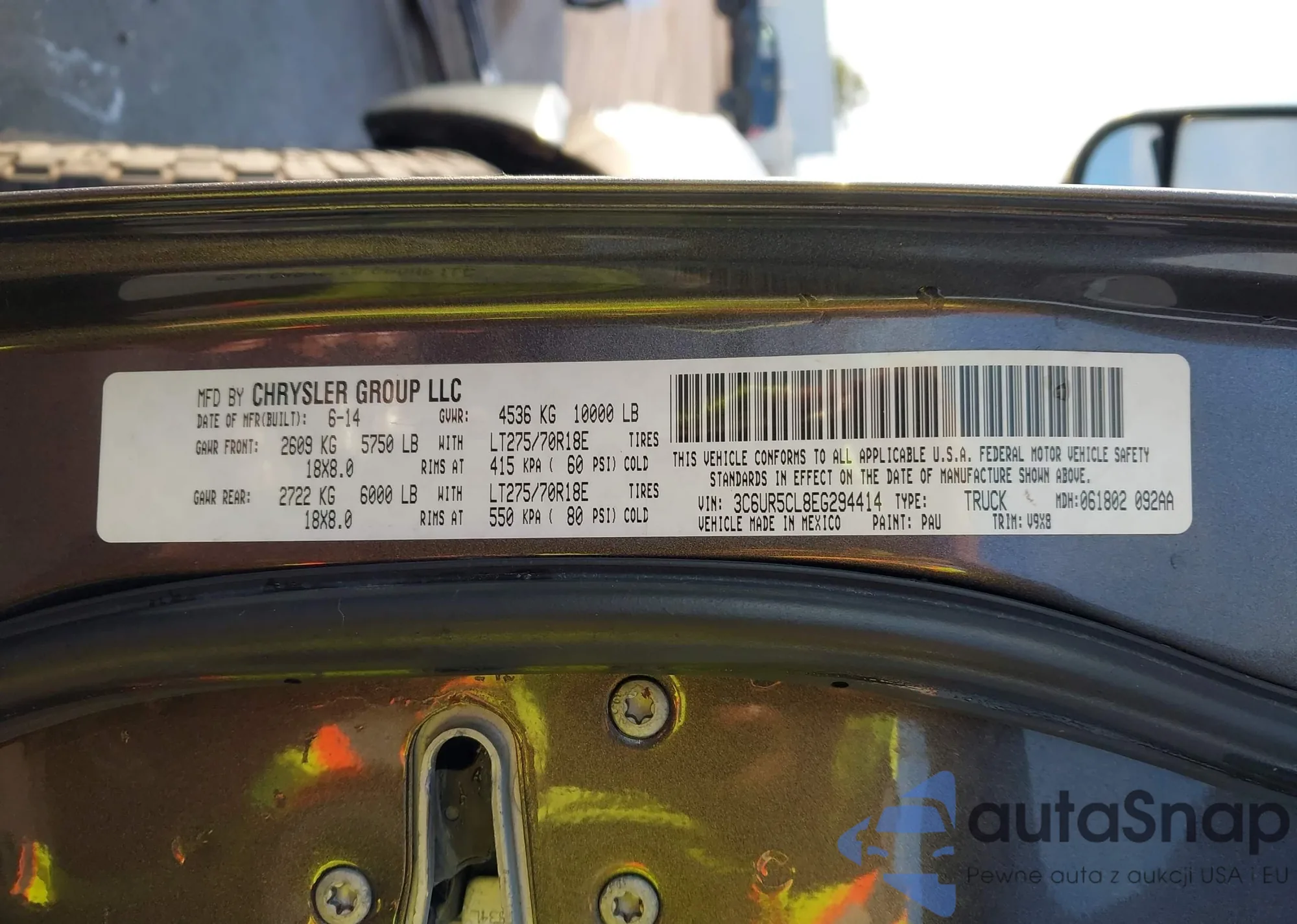 • VIN 3C6UR5CL8EG294414