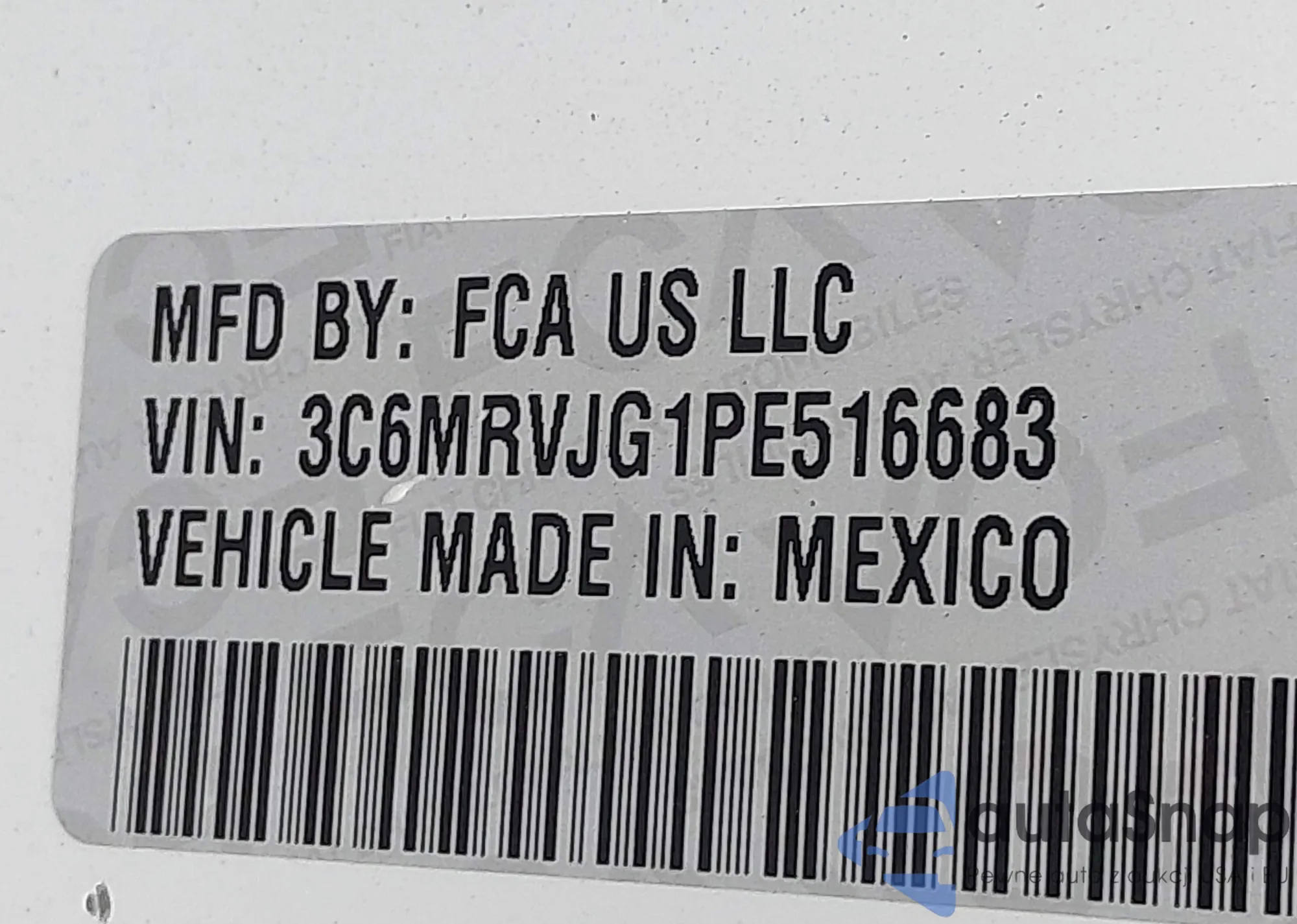 LOT: 43261953 VIN: 3C6MRVJG1PE516683