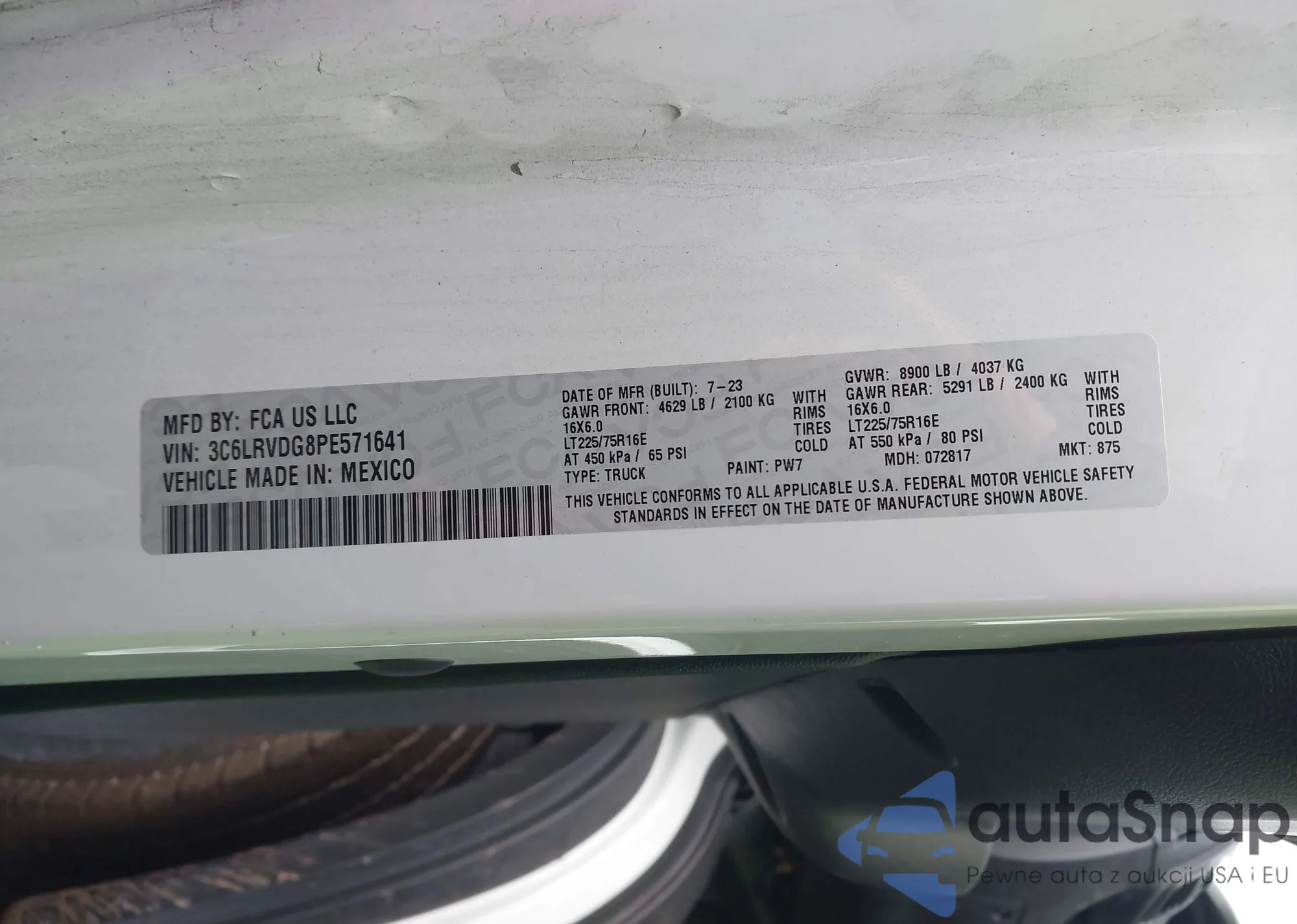 LOT: 43896450 VIN: 3C6MRVJG6PE547489