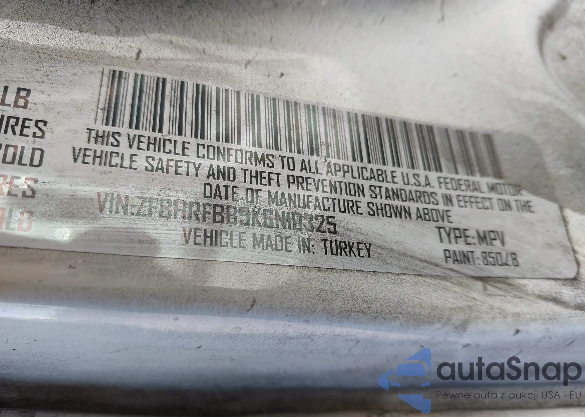 LOT: 44176457 VIN: ZFBHRFBB5K6N10325