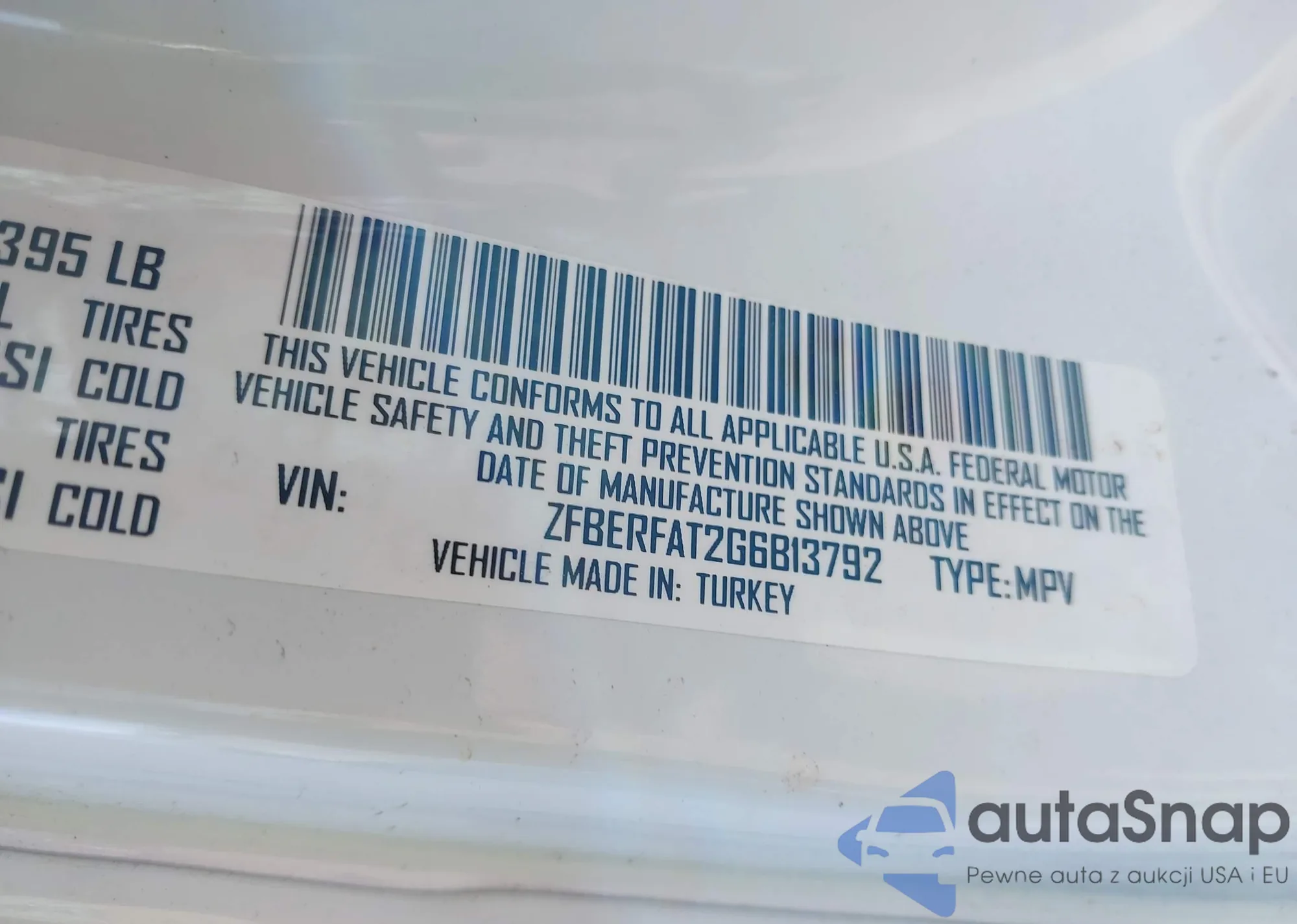 LOT: 44167538 VIN: ZFBERFAT2G6B13792