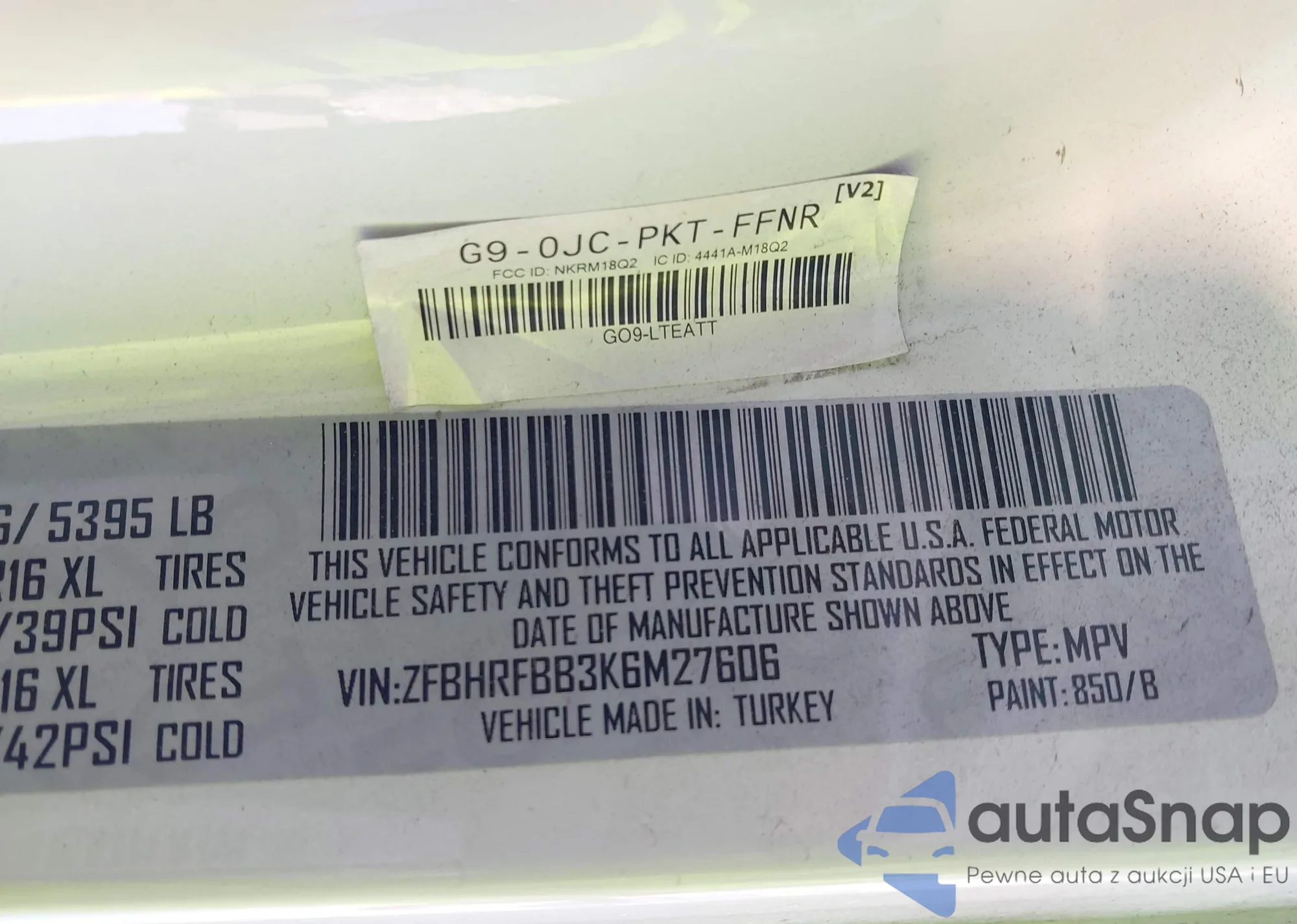 LOT: 44267985 VIN: ZFBERFAB2J6L19481