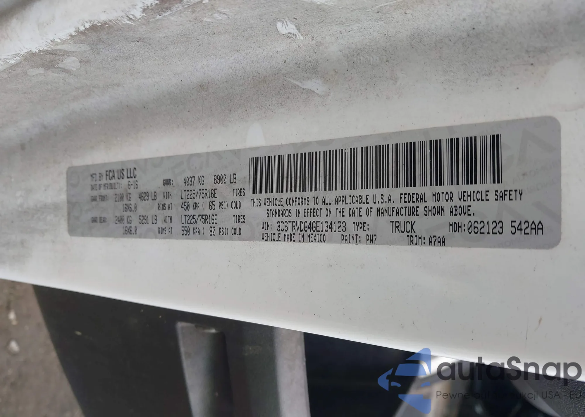 • VIN 3C6TRVDG4GE134123