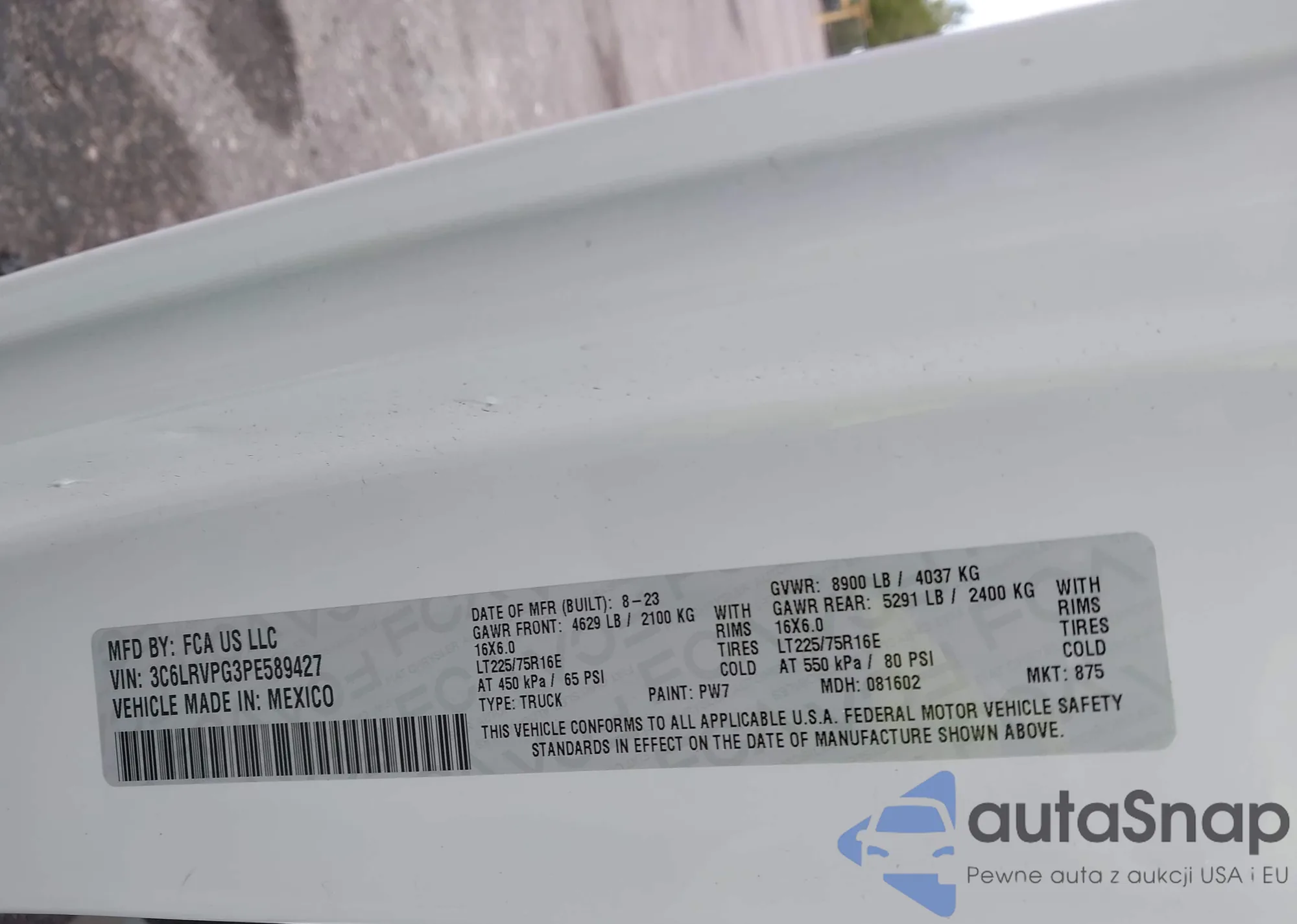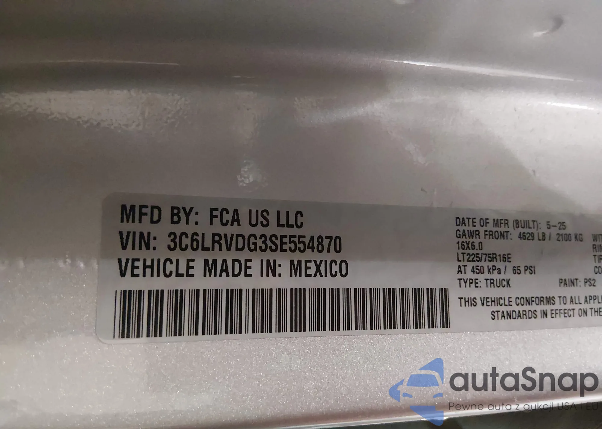 • VIN 3C6LRVPG3PE589427