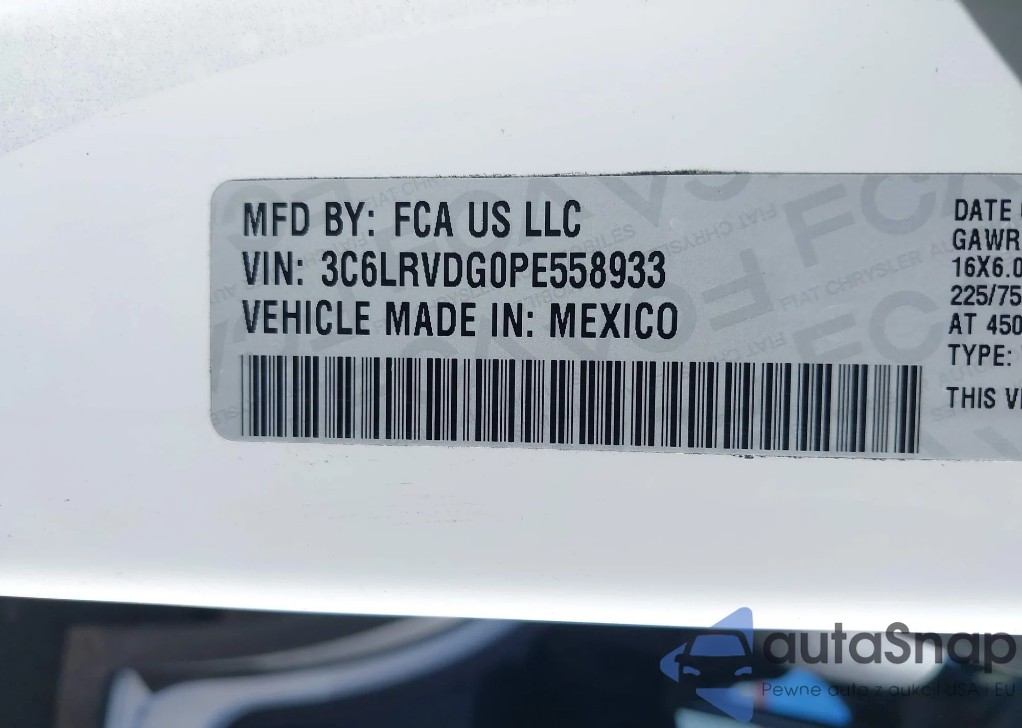 • VIN 3C6LRVDG0PE558933