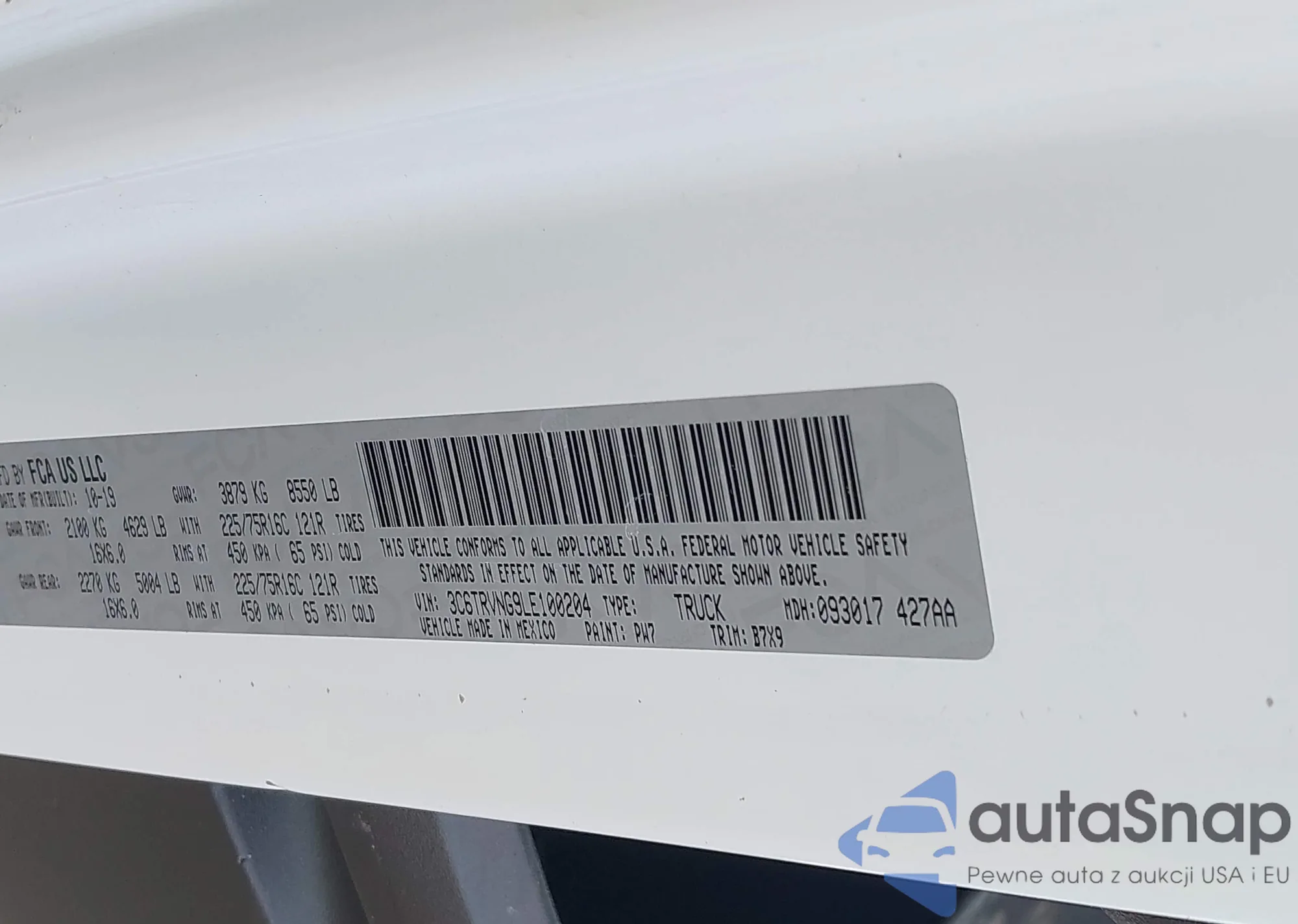 • VIN 3C6TRVNG9LE100204