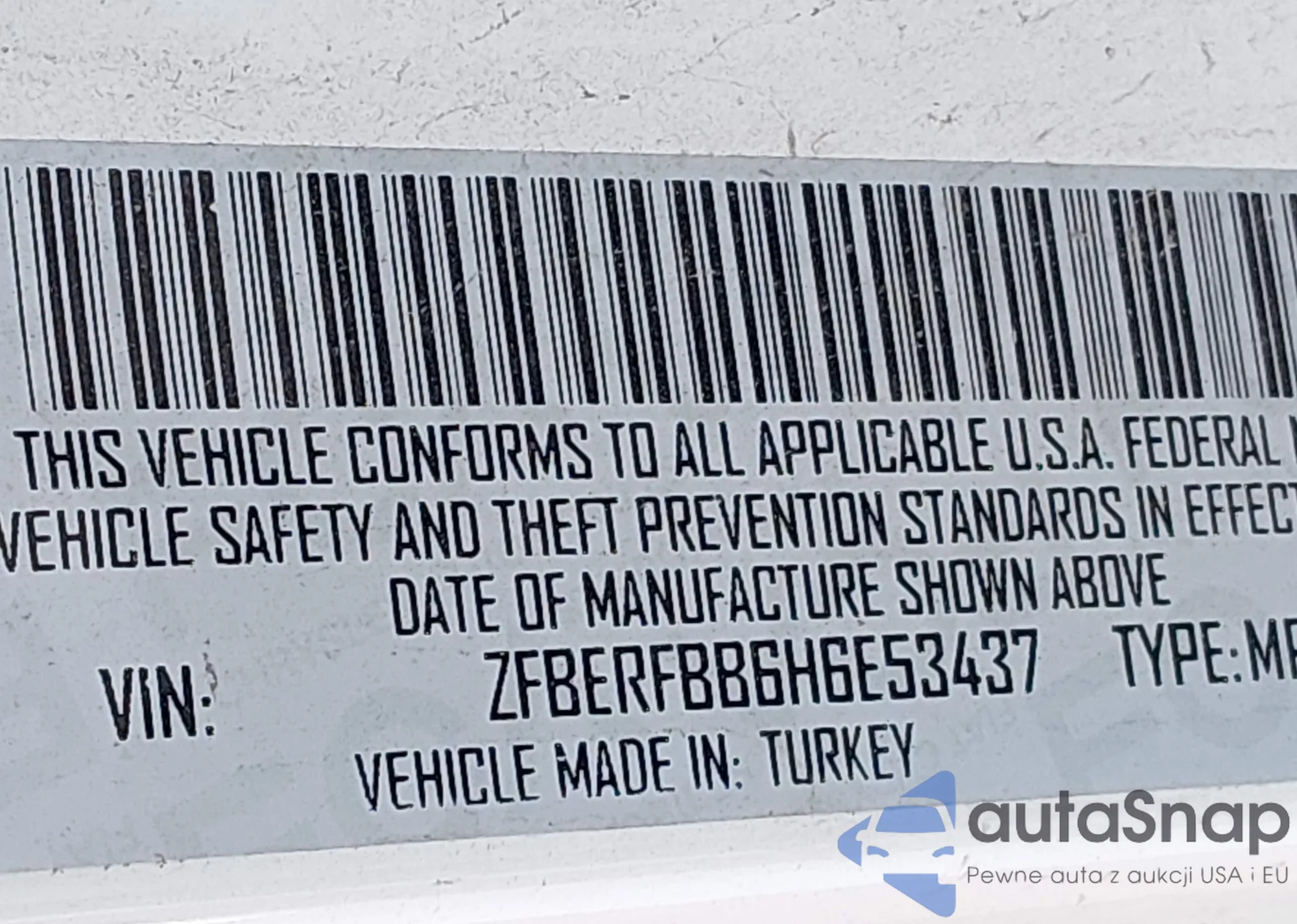 • VIN ZFBERFBB6H6E53437