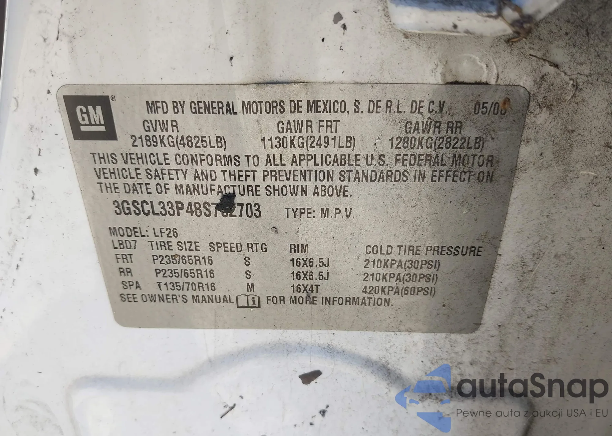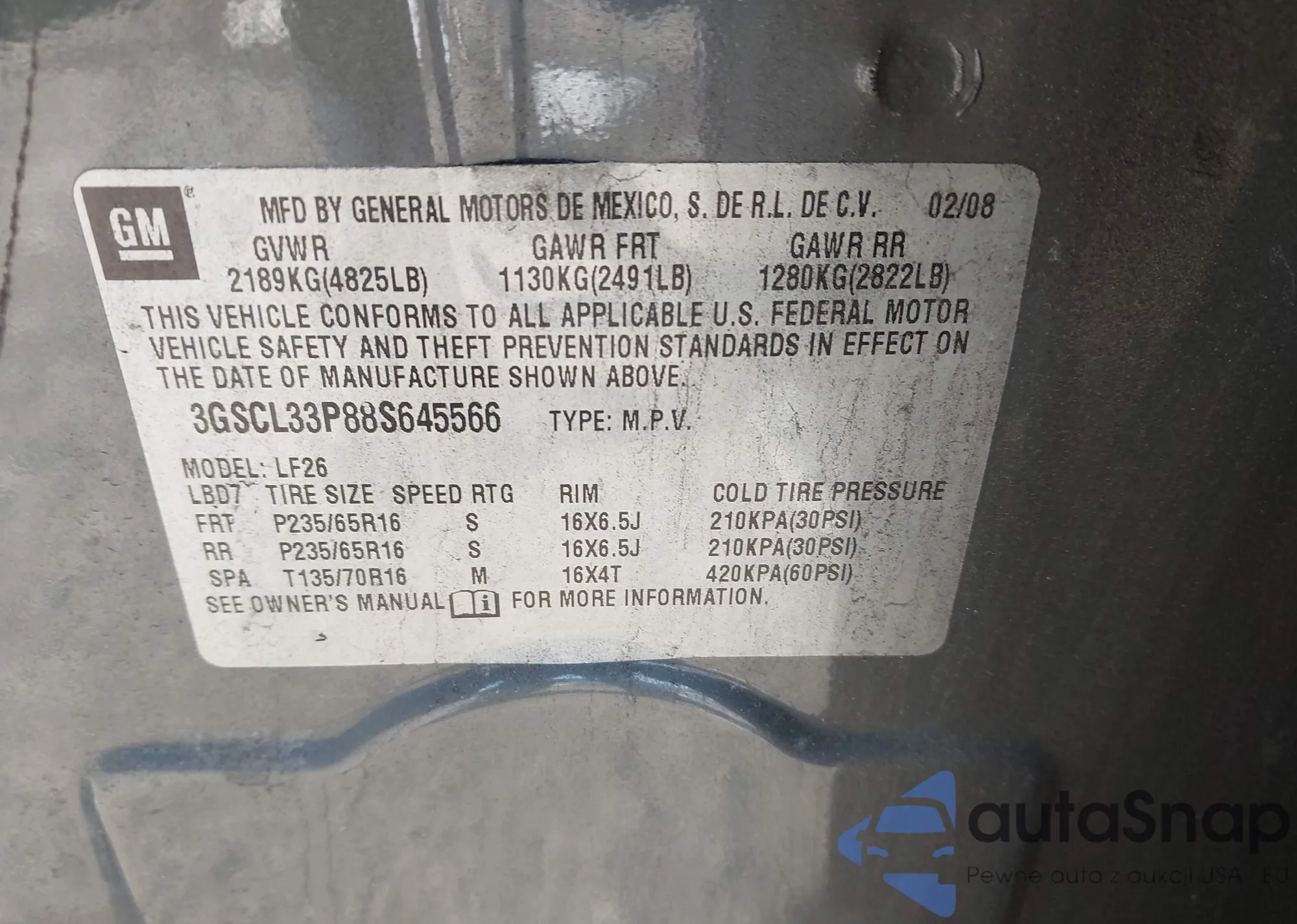 • VIN 3GSCL33PX8S635508