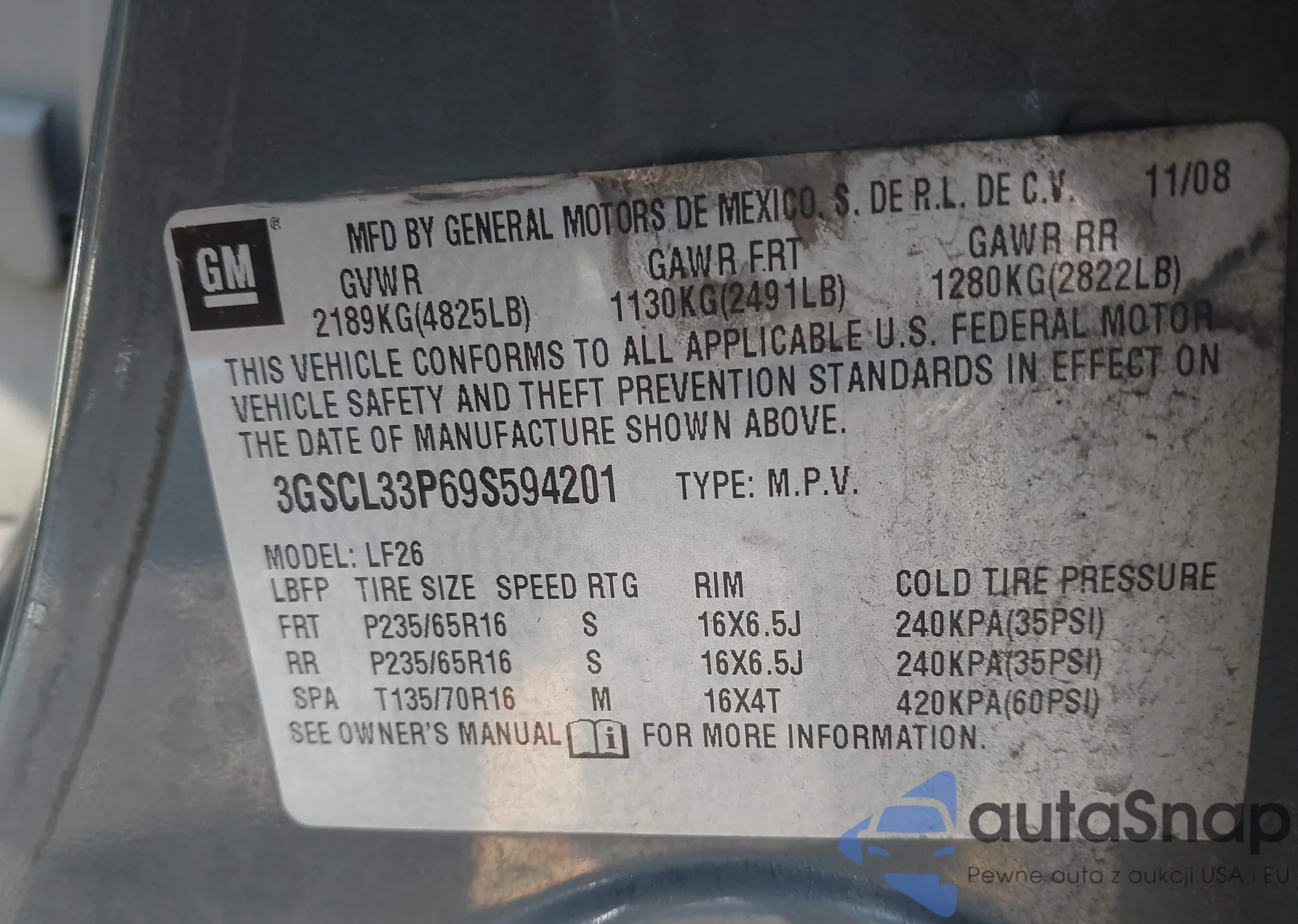 • VIN 3GSCL33P69S594201