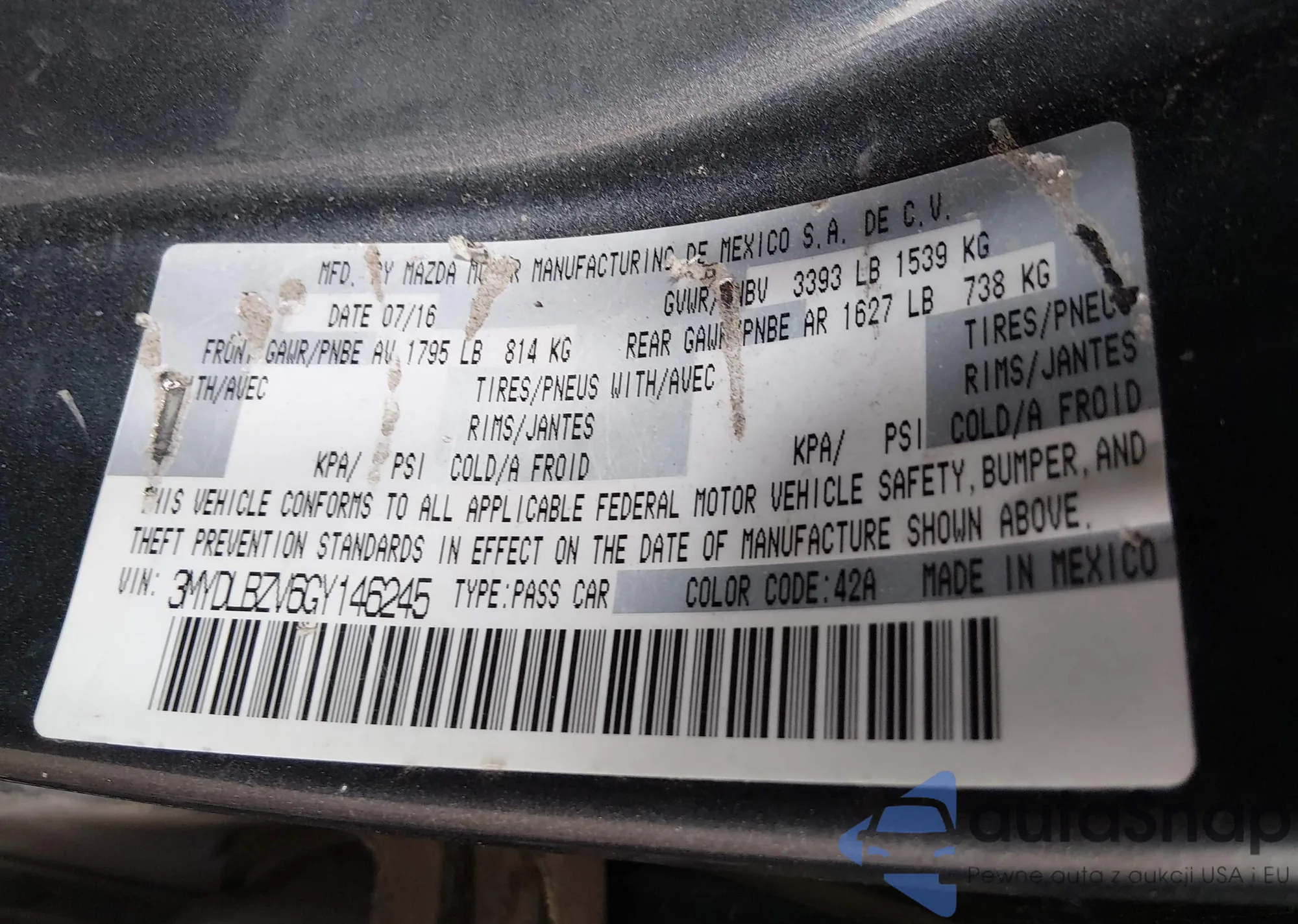 • VIN 3MYDLBZV6GY146245