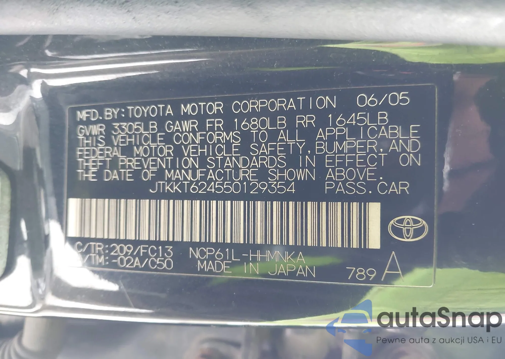 LOT: 44227640 VIN: JTKKT624550129354