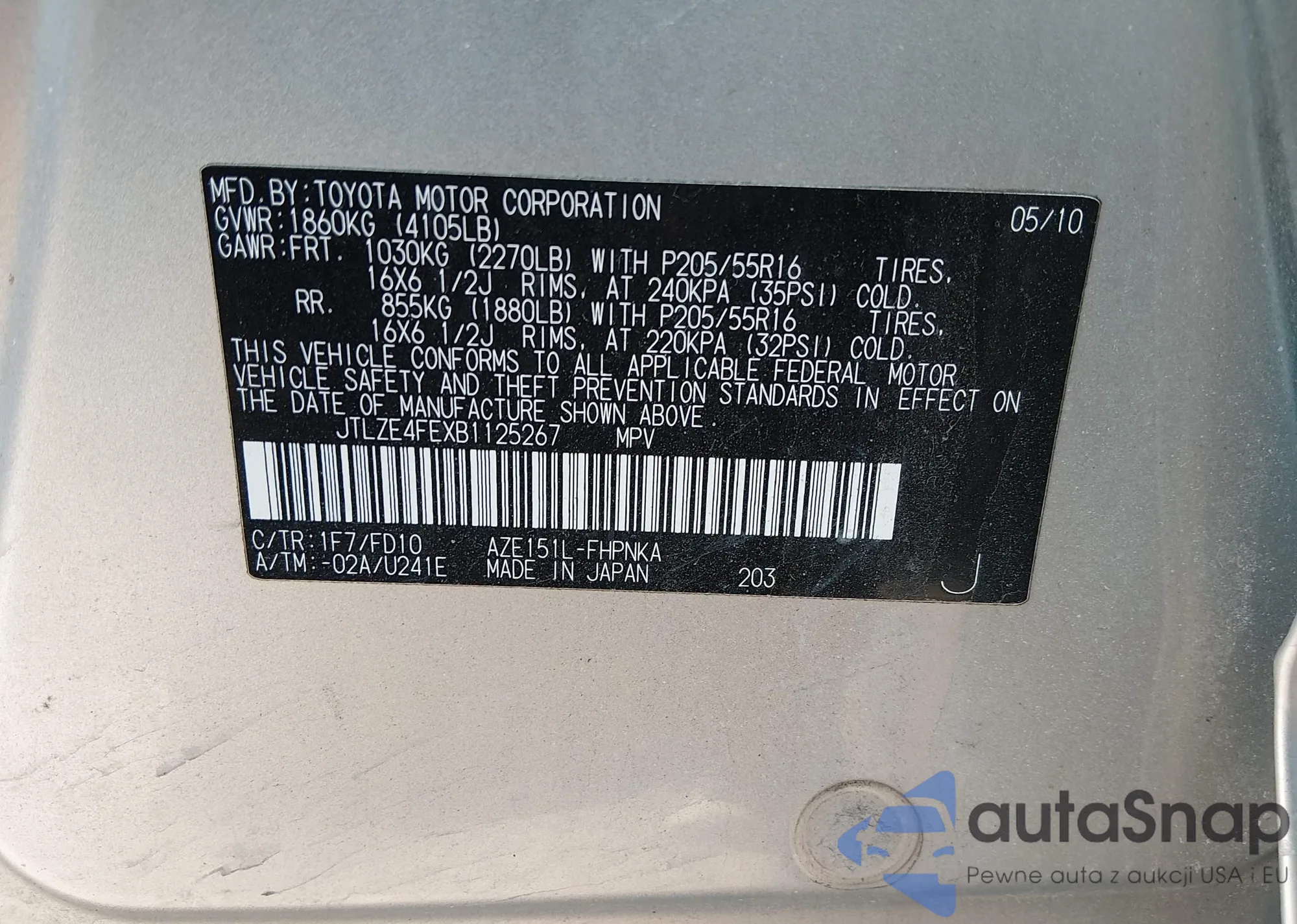 • VIN JTLZE4FE5A1108519