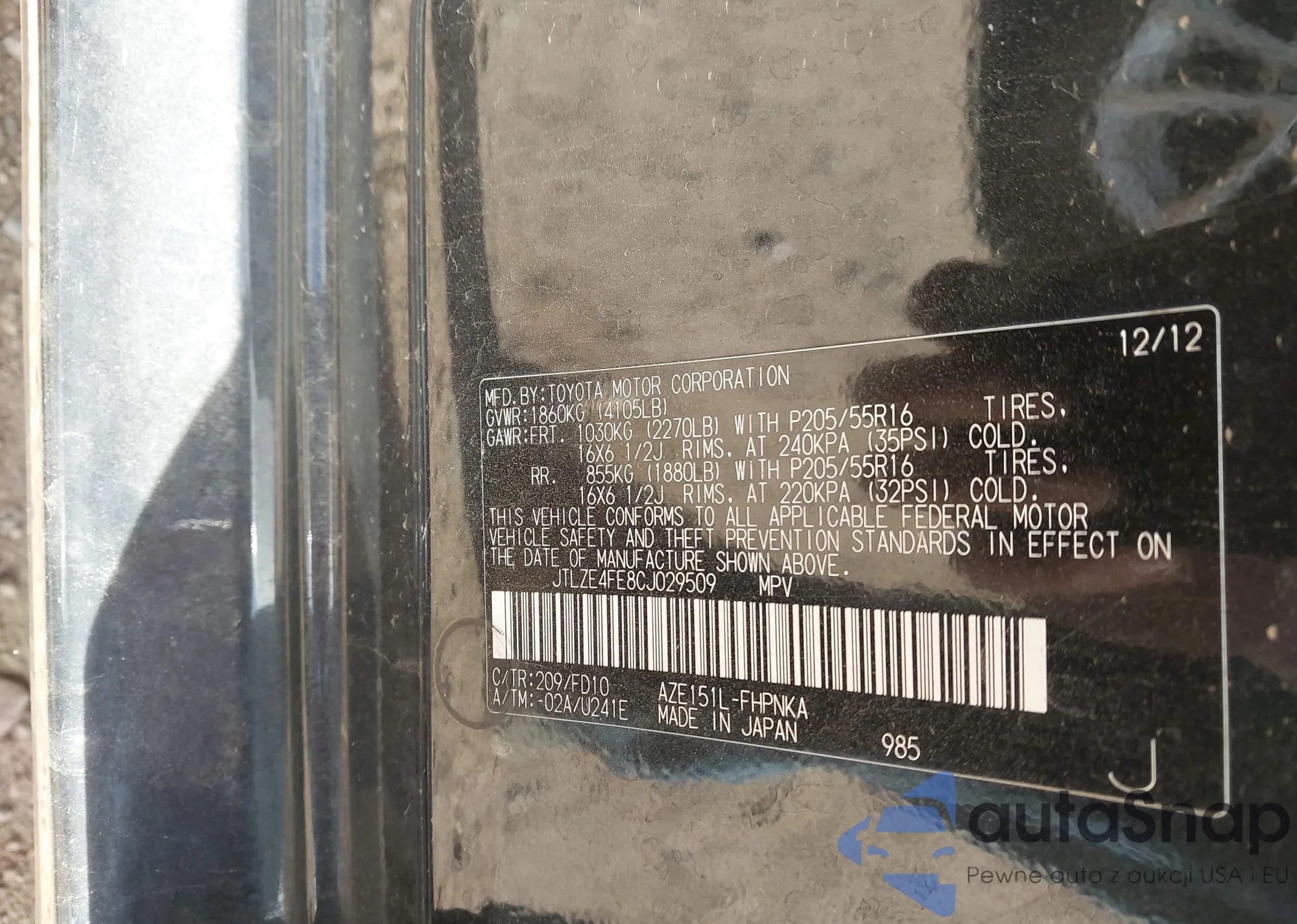 • VIN JTLZE4FE8CJ029509