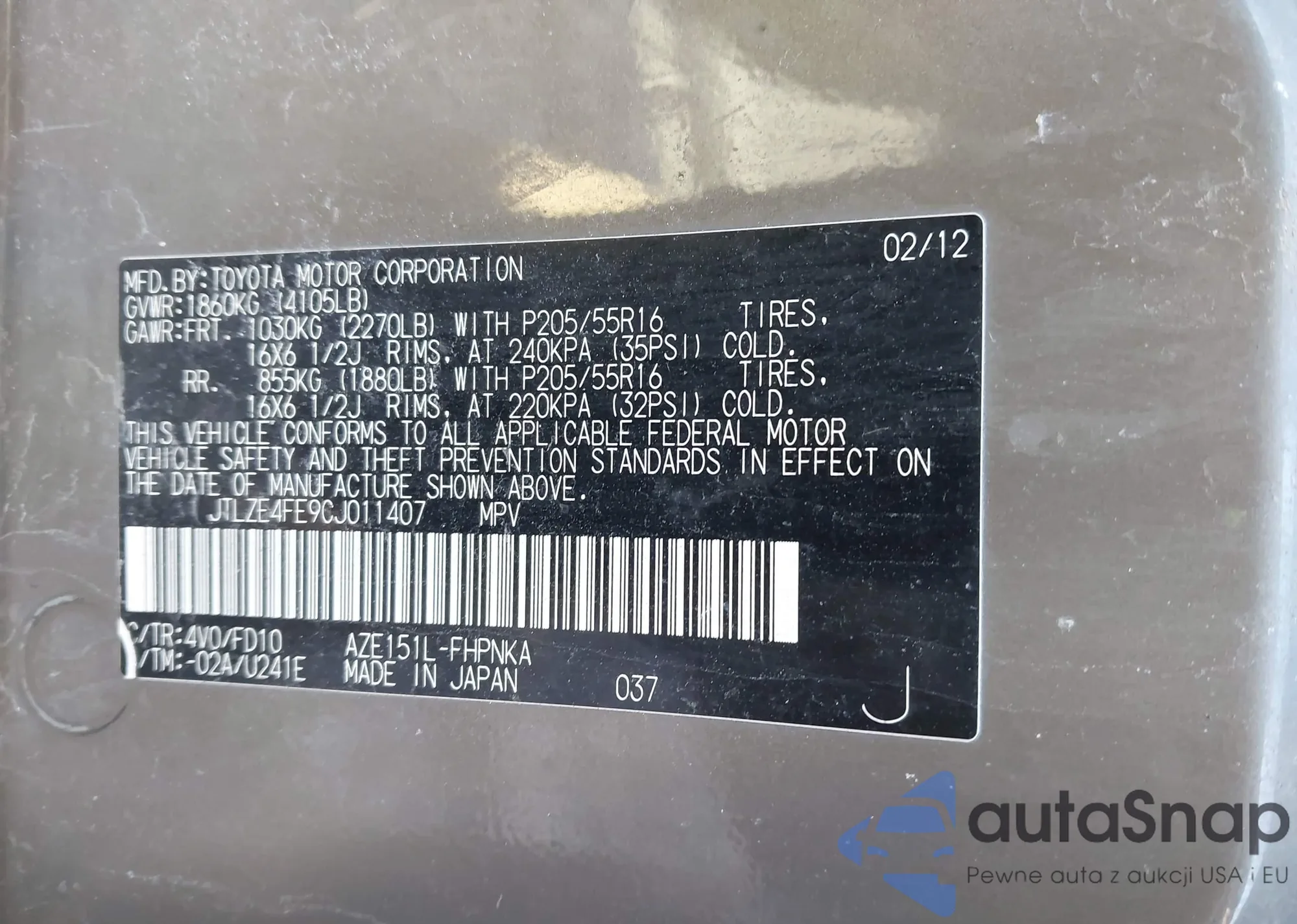 • VIN JTLZE4FE9CJ011407