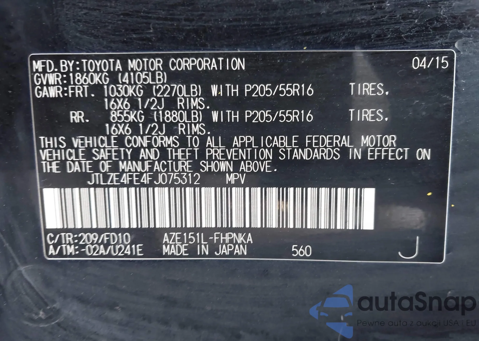 • VIN JTLZE4FE4FJ075312