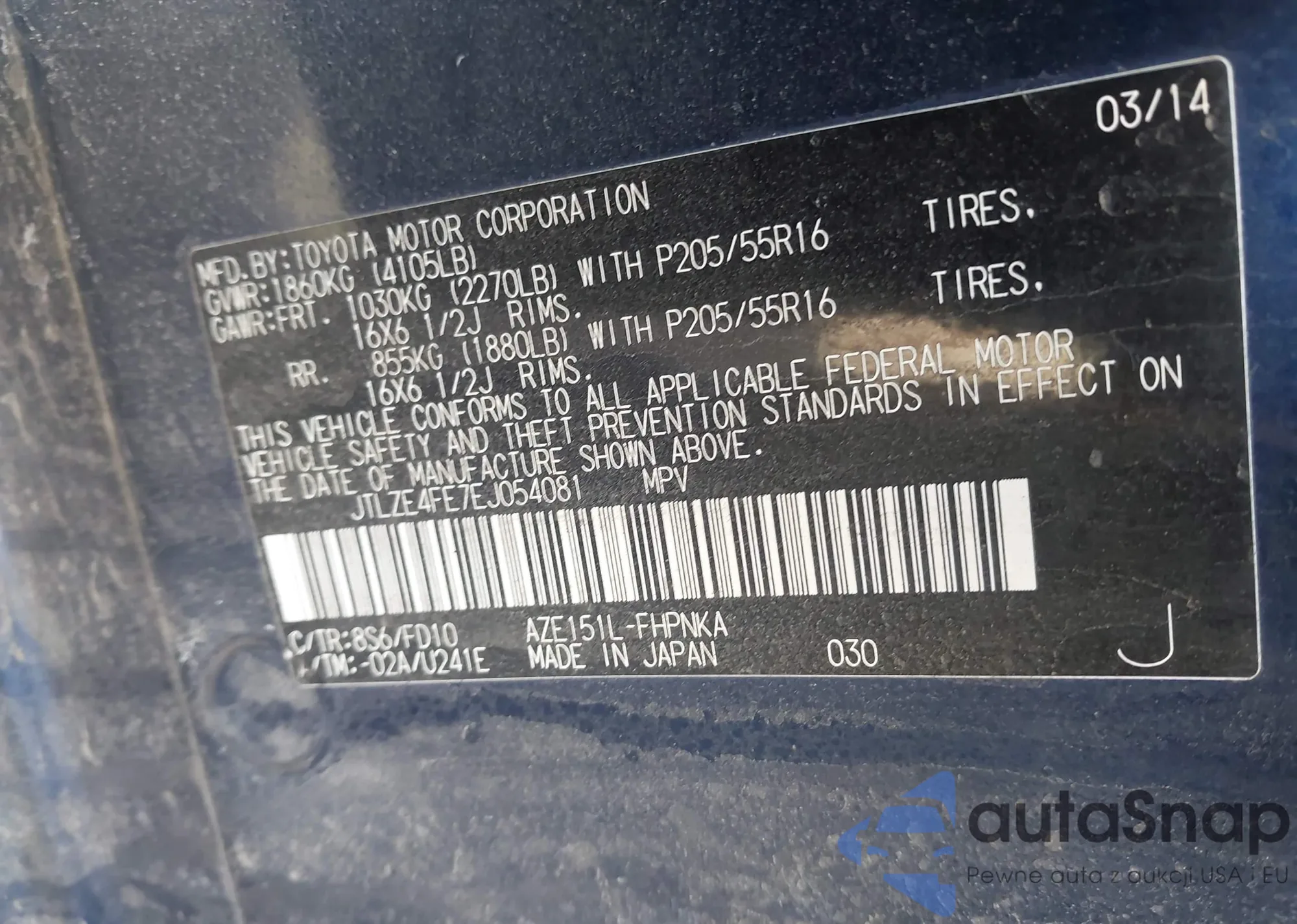 • VIN JTLZE4FE7EJ054081
