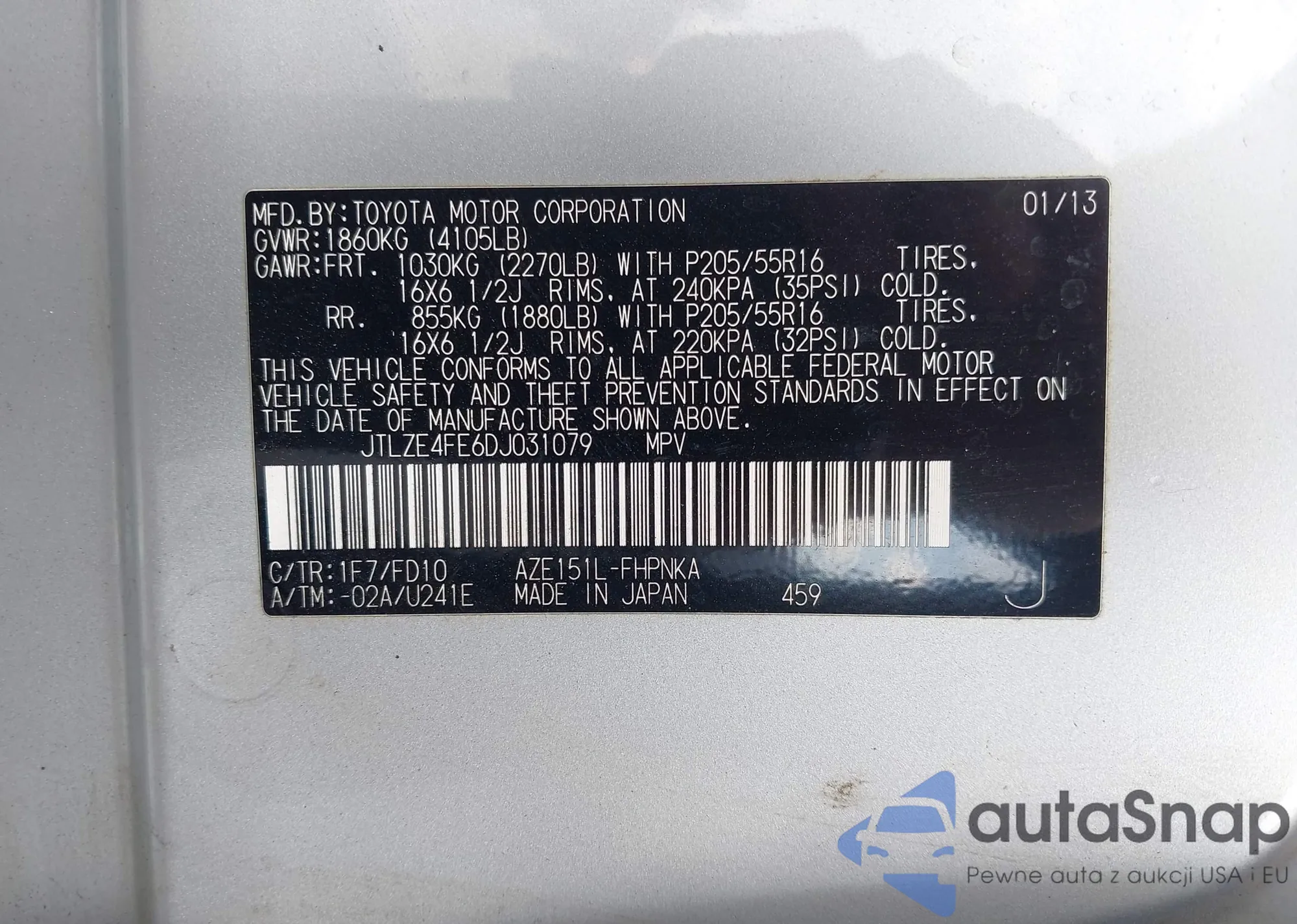 • VIN JTLZE4FE6DJ031079