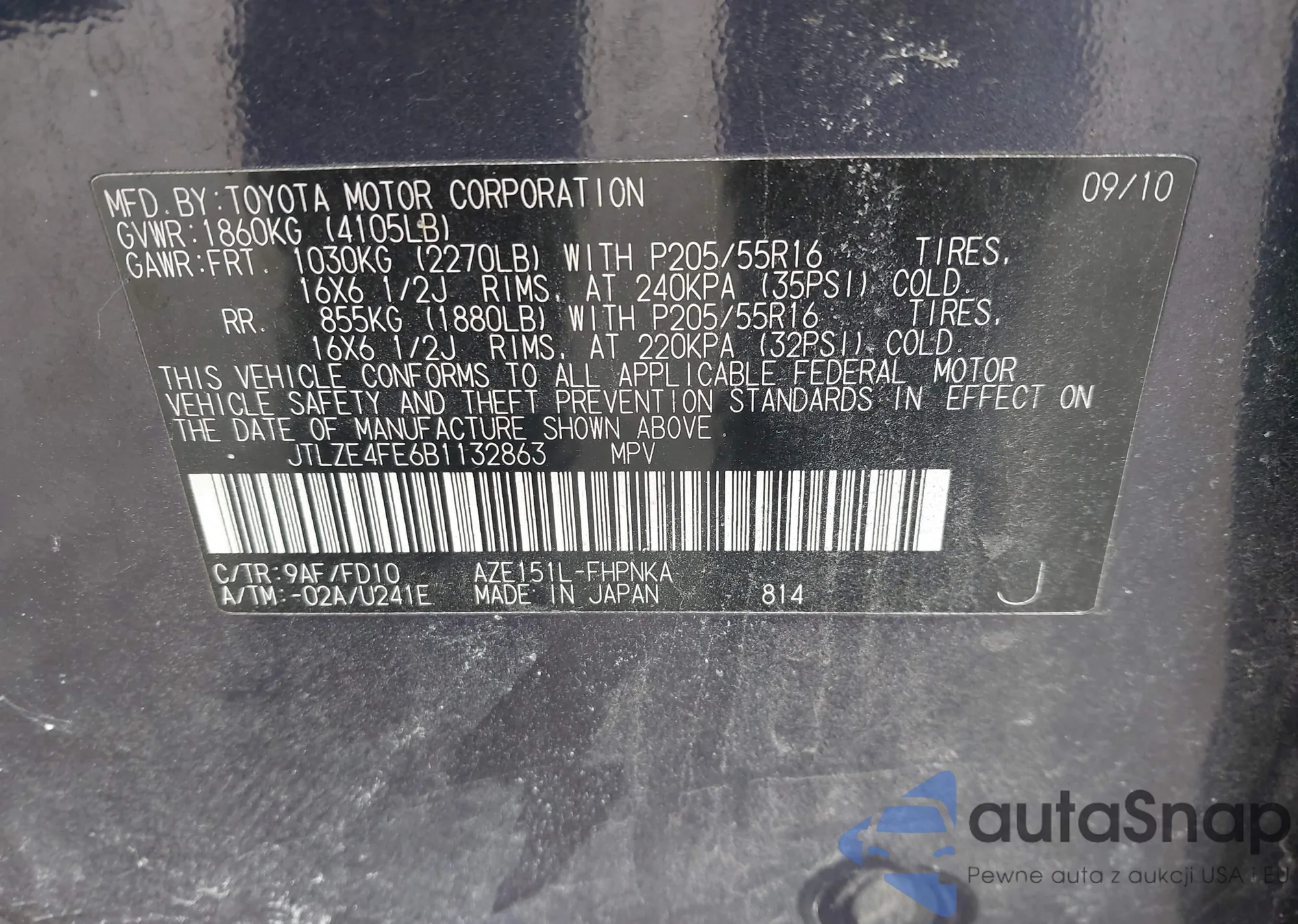 • VIN JTLZE4FE6B1132863