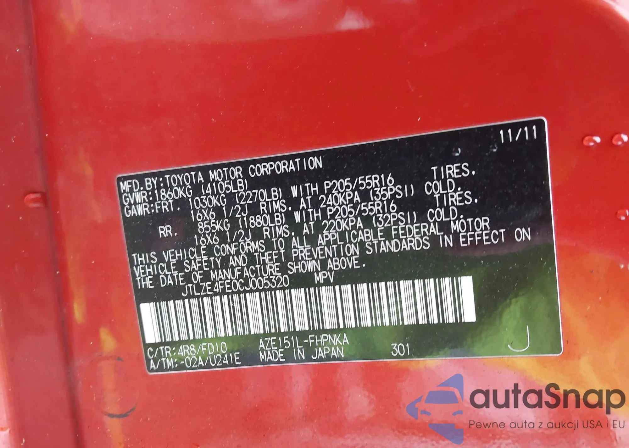 • VIN JTLZE4FE0CJ005320