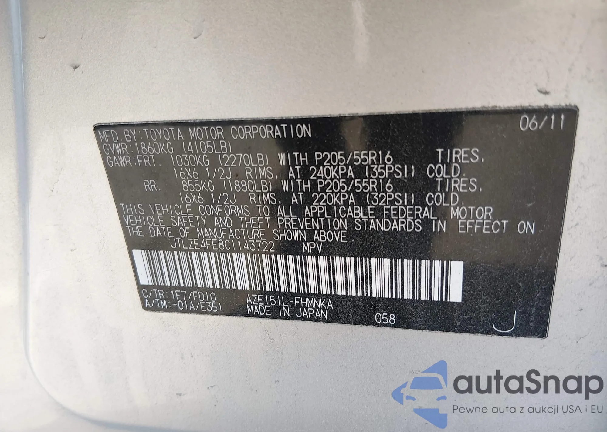 • VIN JTLZE4FE8C1143722