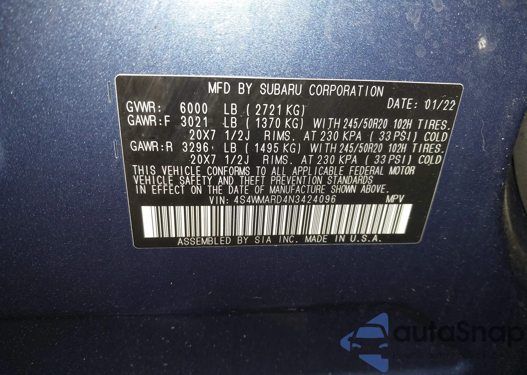 LOT: 44354199 VIN: 4S4WMARD4N3424096