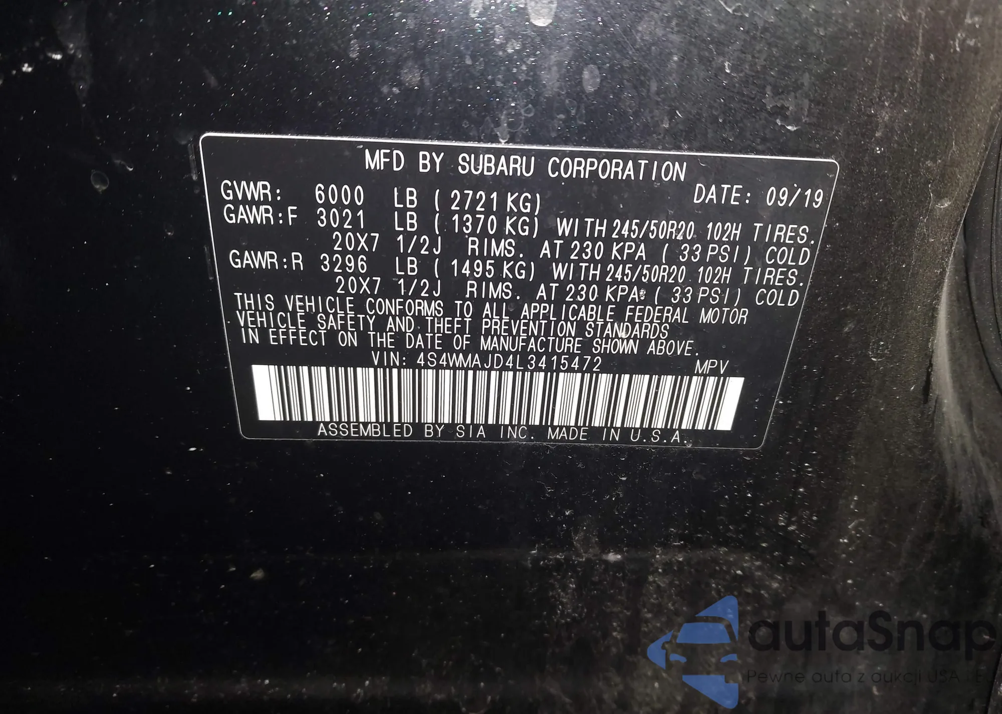 • VIN 4S4WMAJD4L3415472