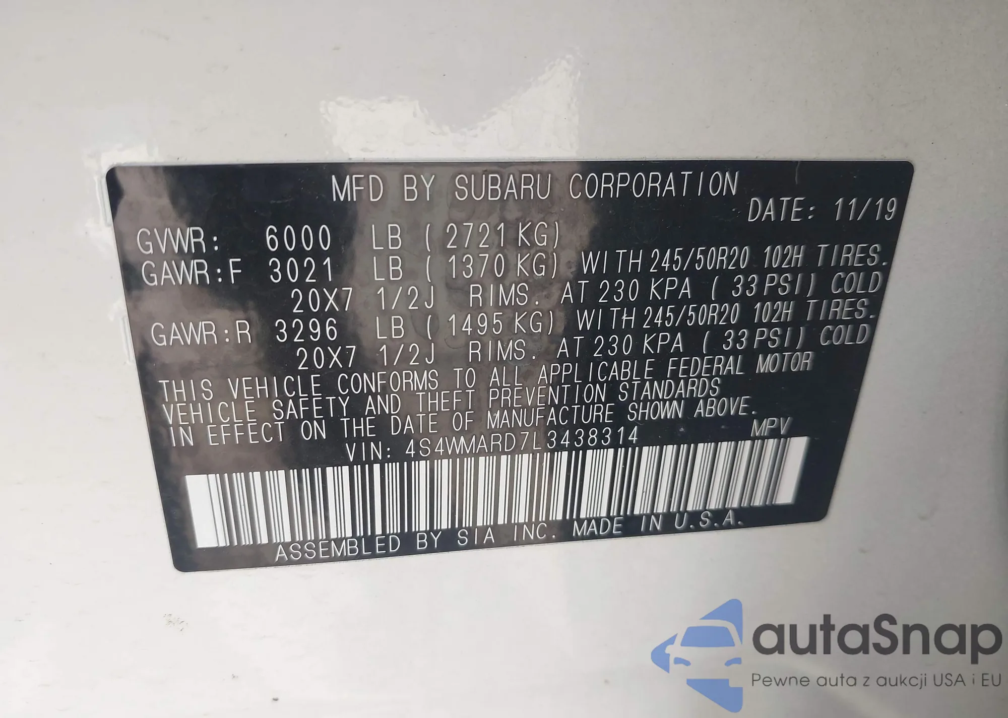 LOT: 44437547 VIN: 4S4WMARD8L3474433