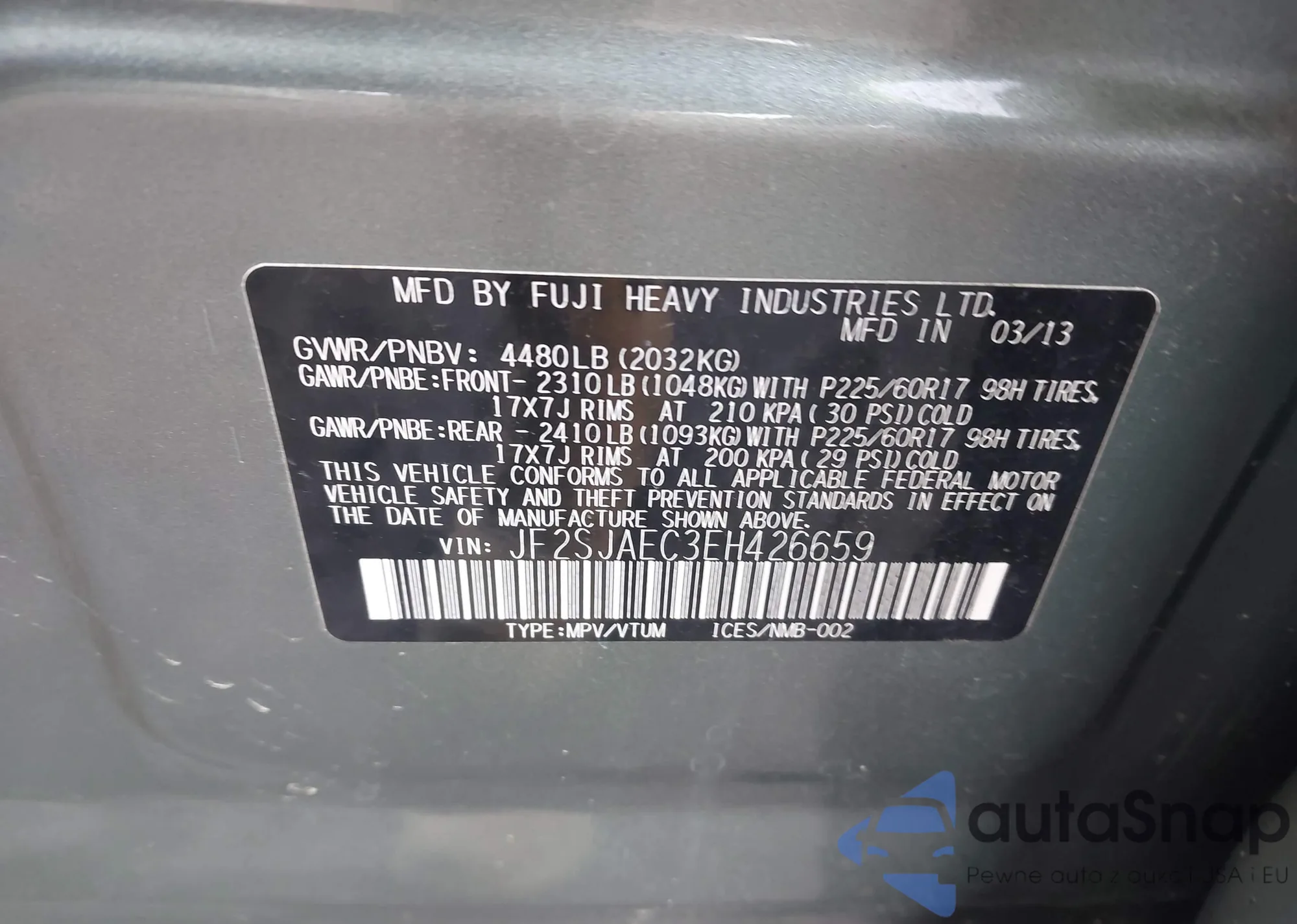 • VIN JF2SJAEC3EH426659