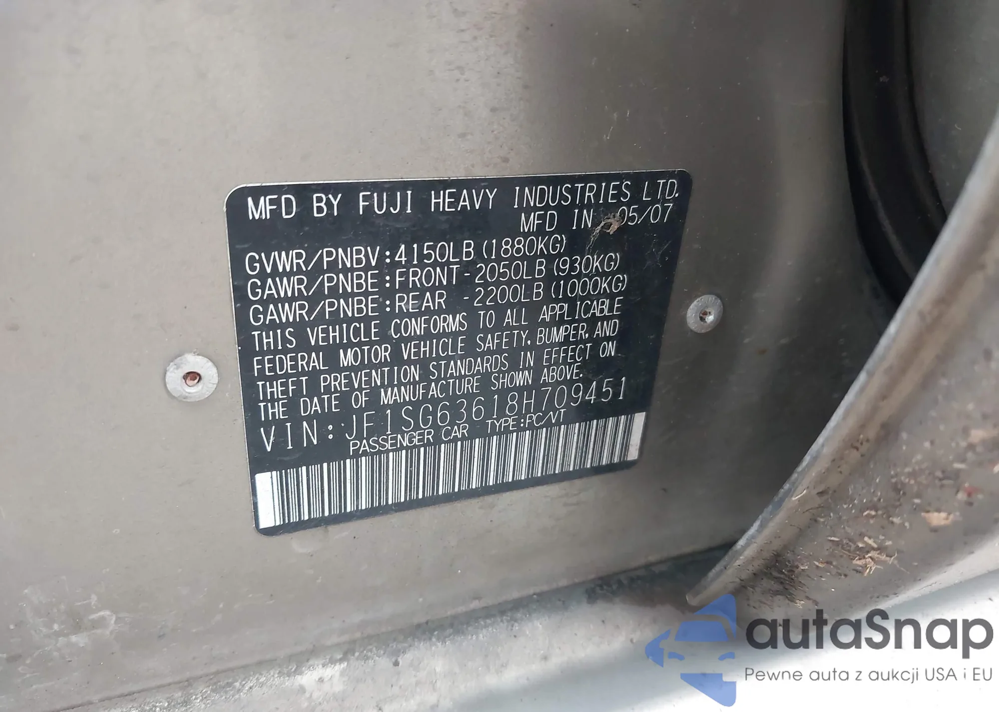 • VIN JF1SG63618H709451