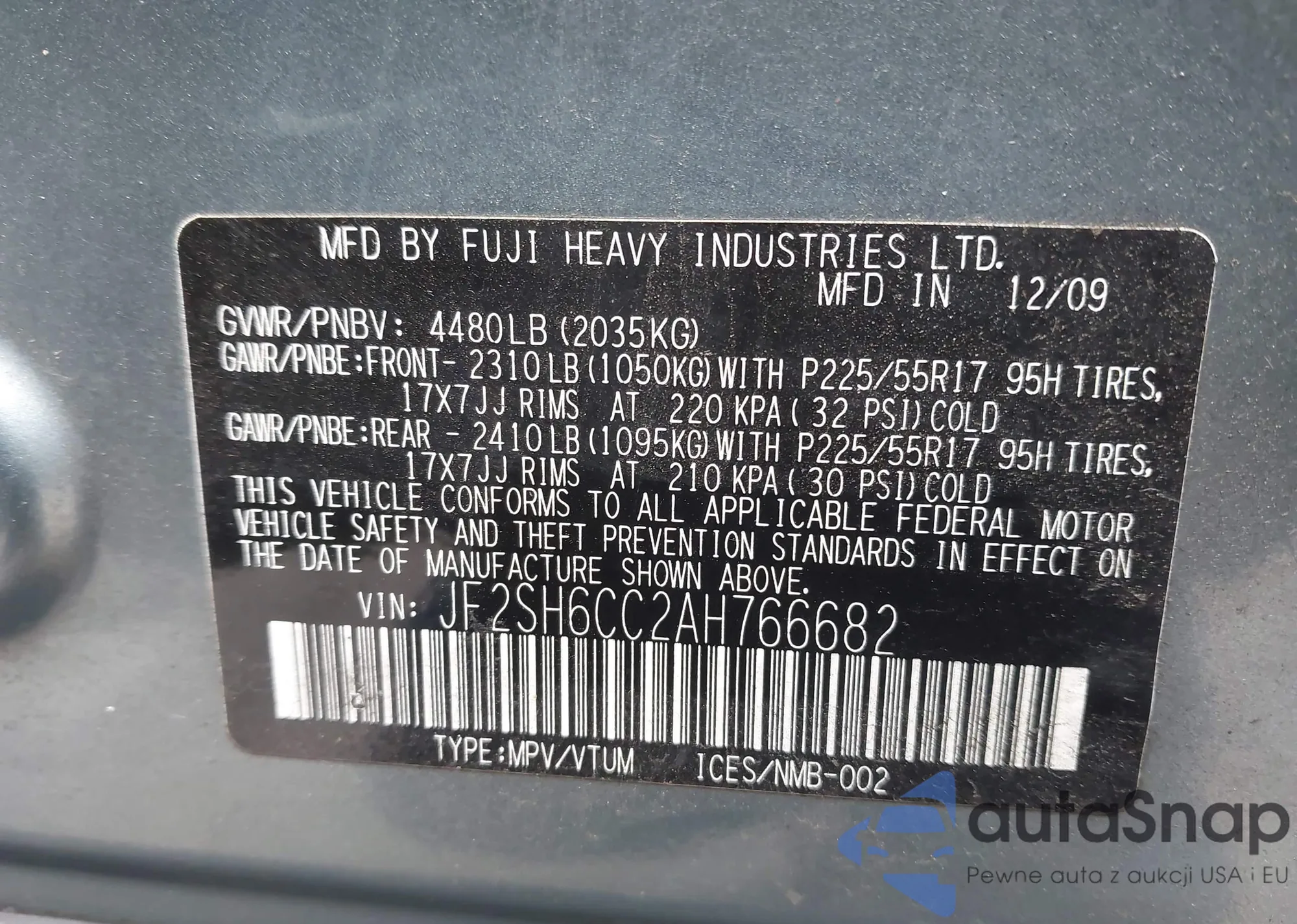 • VIN JF2SH6CC2AH766682