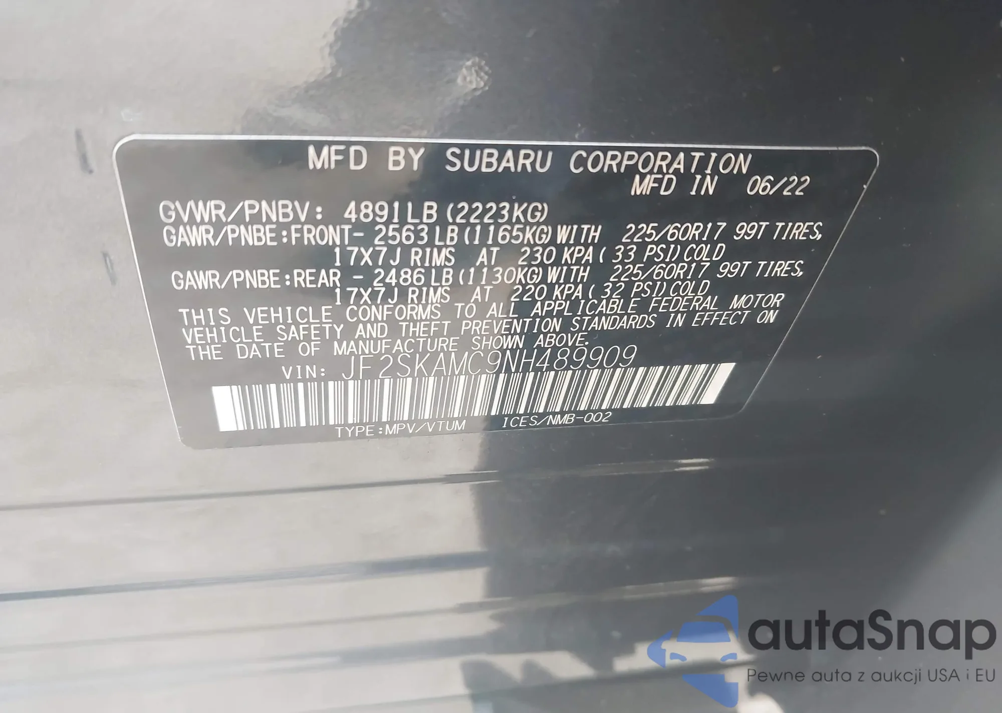 • VIN JF2SKAMC9NH489909