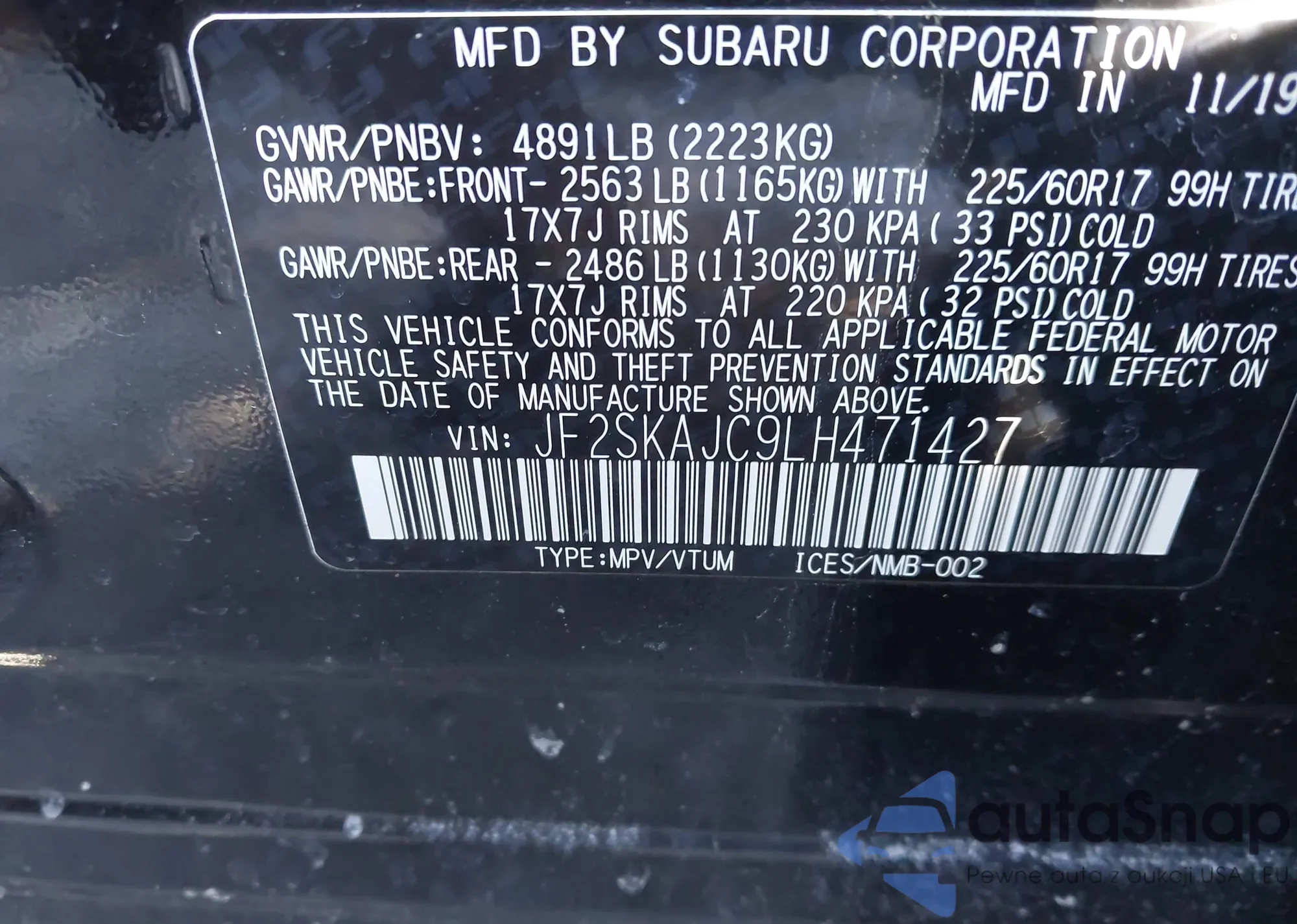 • VIN JF2SKAJC9LH471427