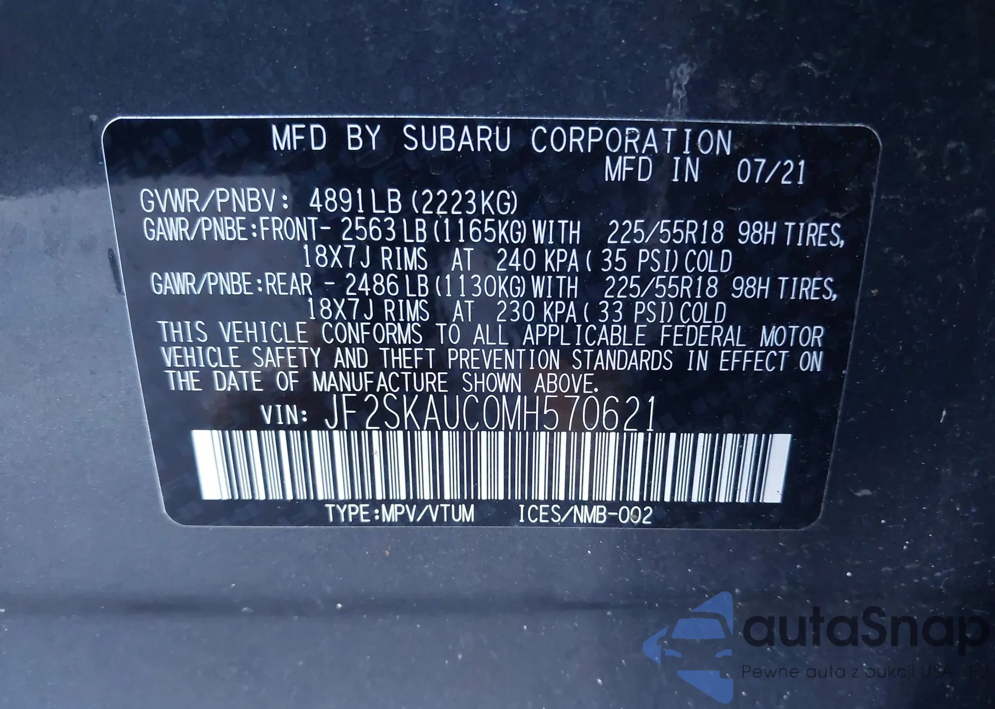 • VIN JF2SKAUC0MH570621