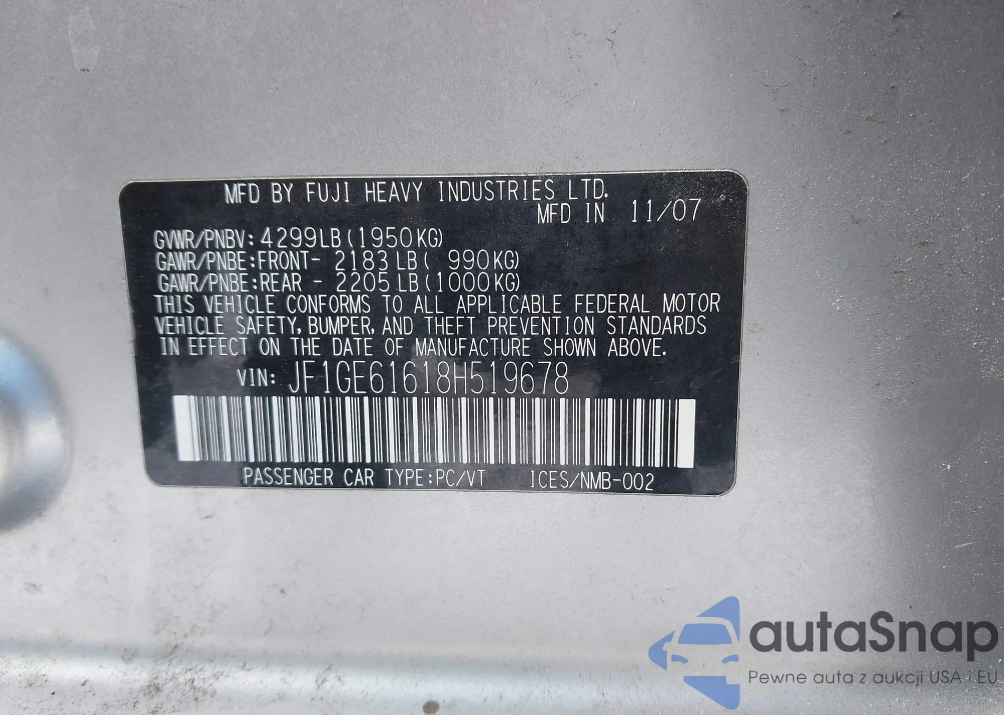 • VIN JF1GE61618H519678