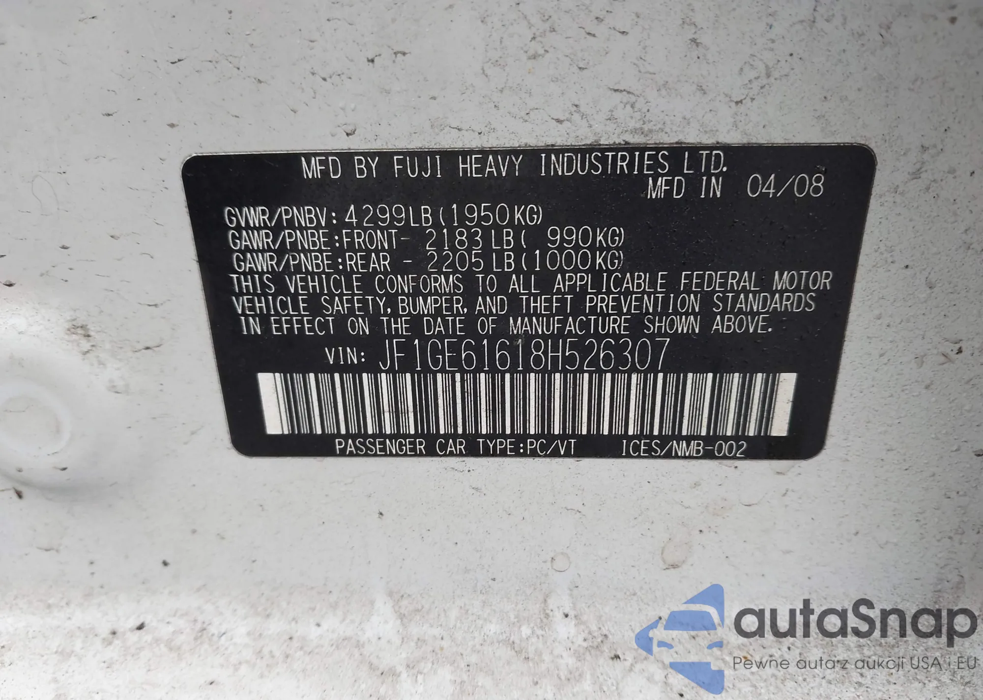 • VIN JF1GE61618H526307
