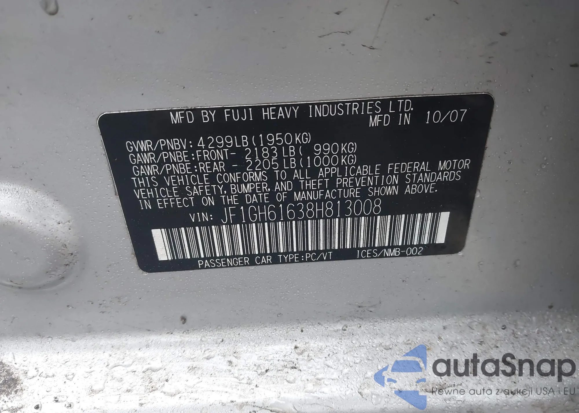 LOT: 44420901 VIN: JF1GH61638H813008