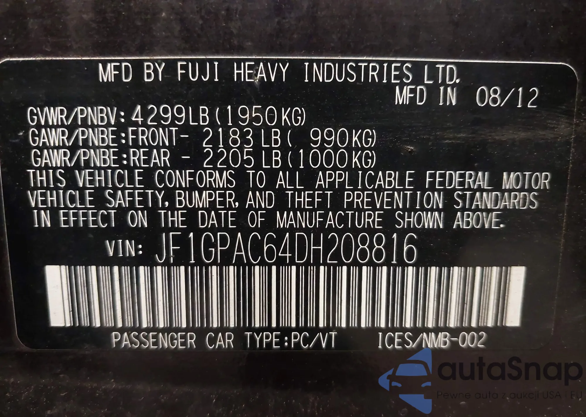 • VIN JF1GPAC64DH208816