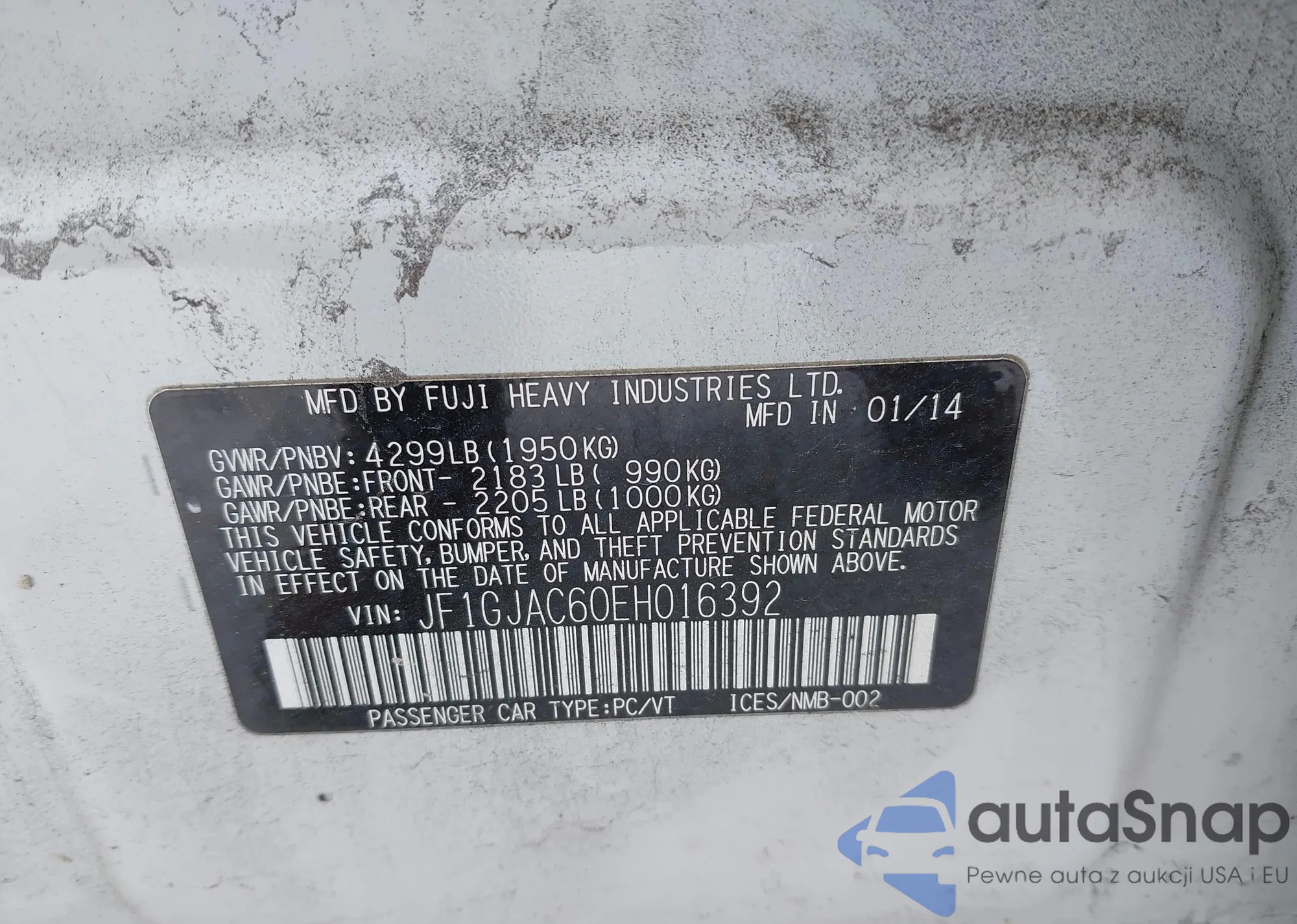 • VIN JF1GJAC60EH016392