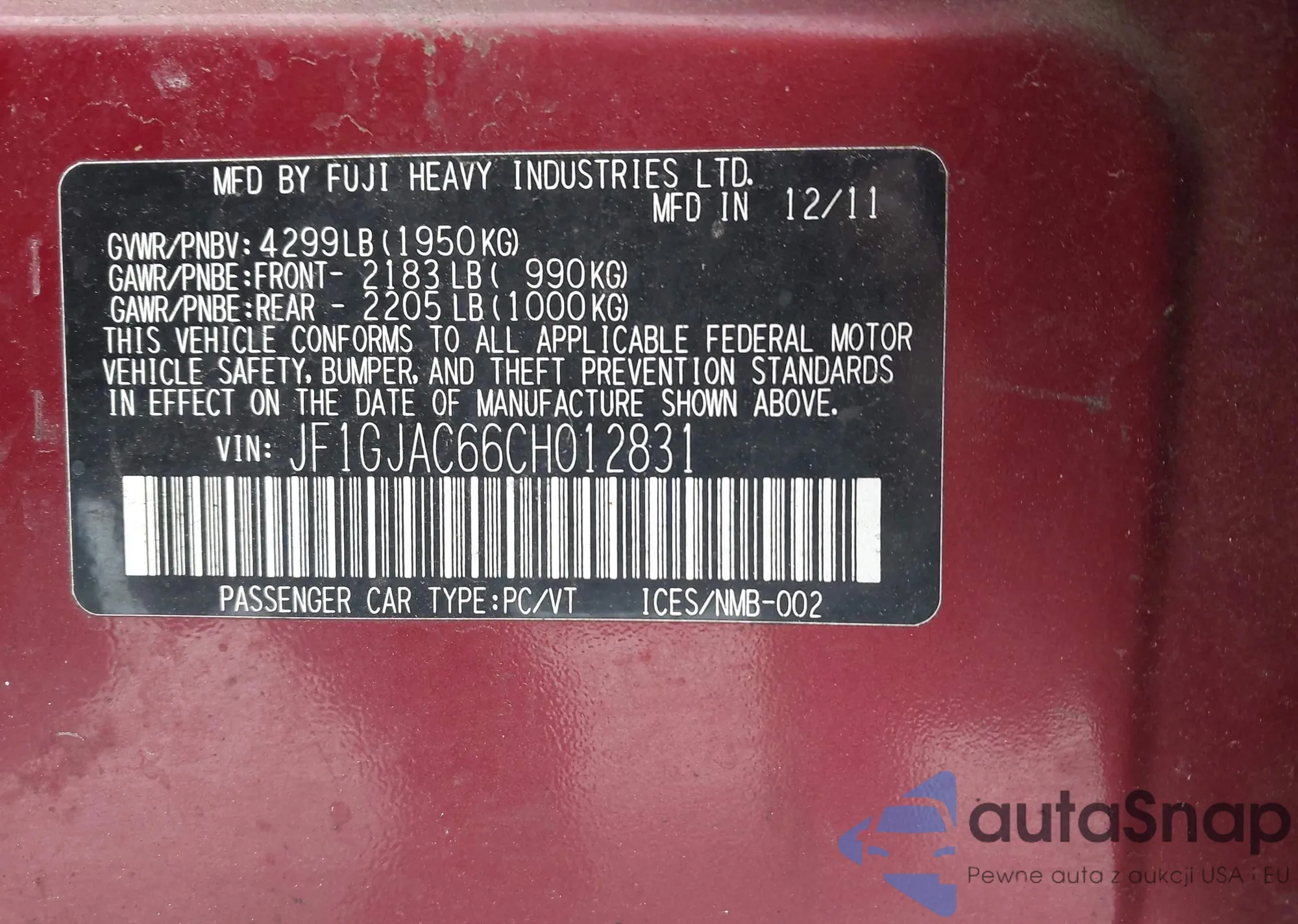 • VIN JF1GJAC66CH012831